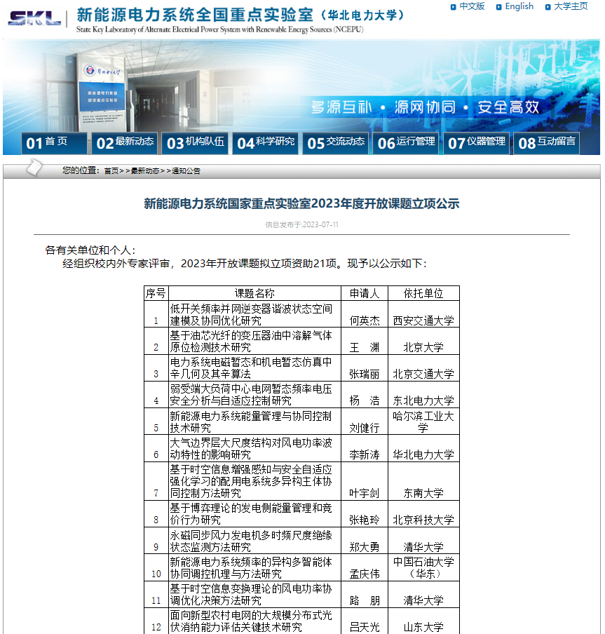 团队吕天光教授获新能源电力系统国家重点实验室2023...