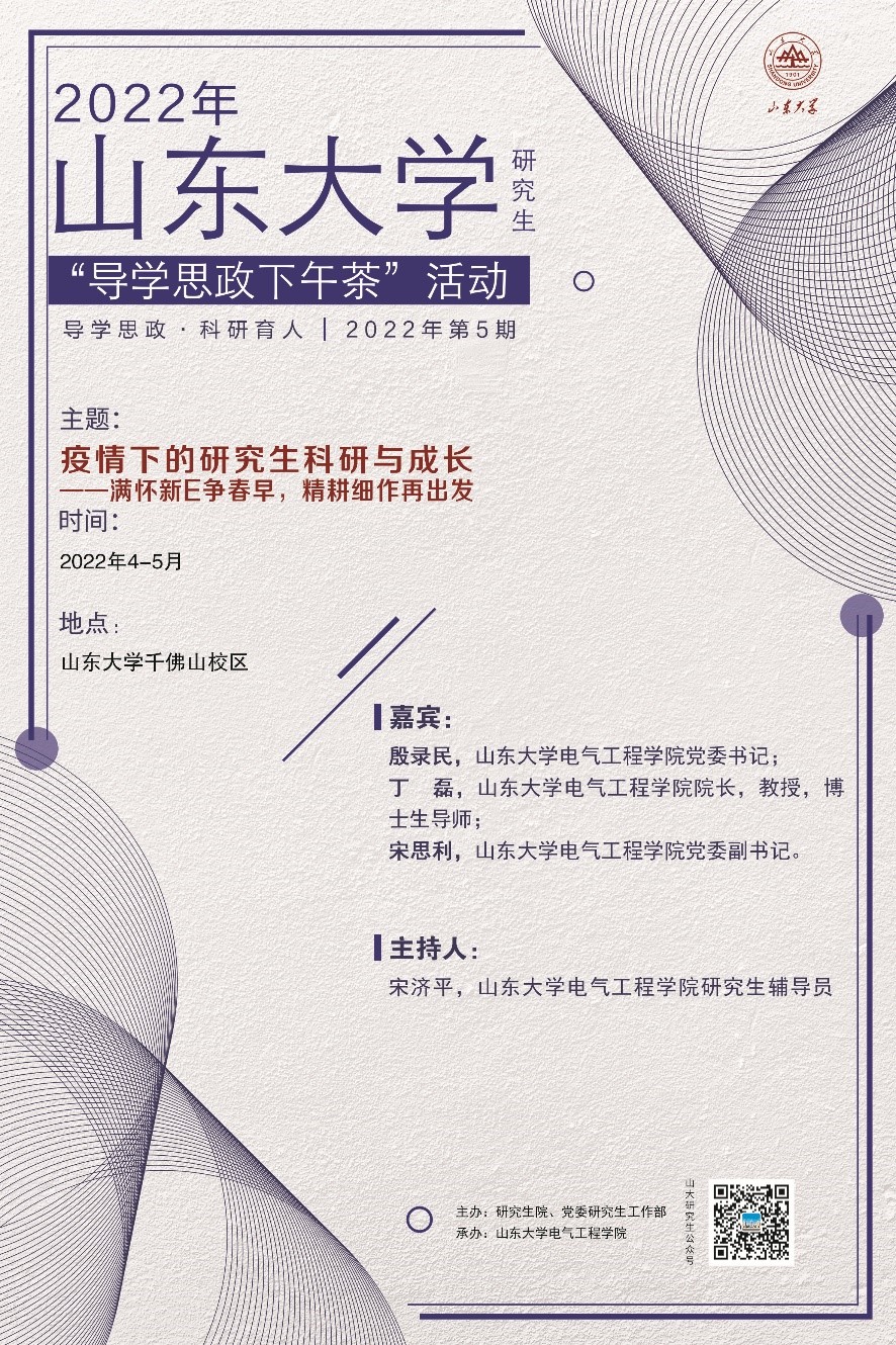 近期疫情形势愈发严峻,为做好疫情防控工作,学校暂时实行封闭式管理。在此期间,为了积极响应学校政策,保障疫情下的研究生科研与成长,同时鼓励同学们走出宿舍与实验室,欣赏校园春景,丰富精神生活。yl23411永利集团官网登录以“满怀心E争春早,精耕细作再出发”为主题,开展了山东大学研究生“导学思政下午茶”之“全民运动季——打卡校园里的春意”活动篇章。