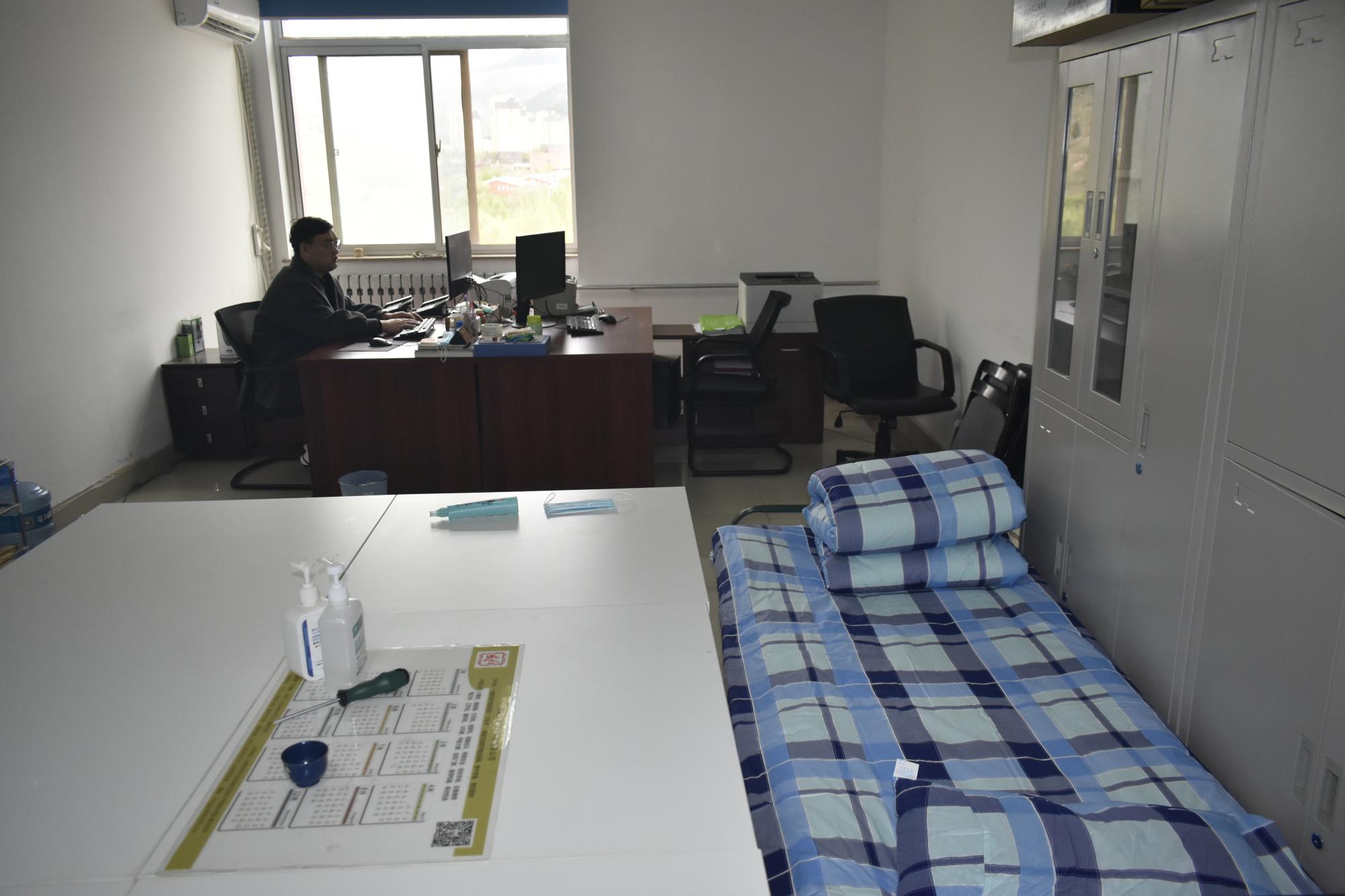 学院教务员、实验员驻守校园,在办公室支起简易行军床,随时为学生提供帮助与服务。学院机关、任课教师、校外志愿者、学工队伍、班主任导师等全体教职员工,始终同学生一起,勠力同心,同频共振,坚守岗位,同心战疫。