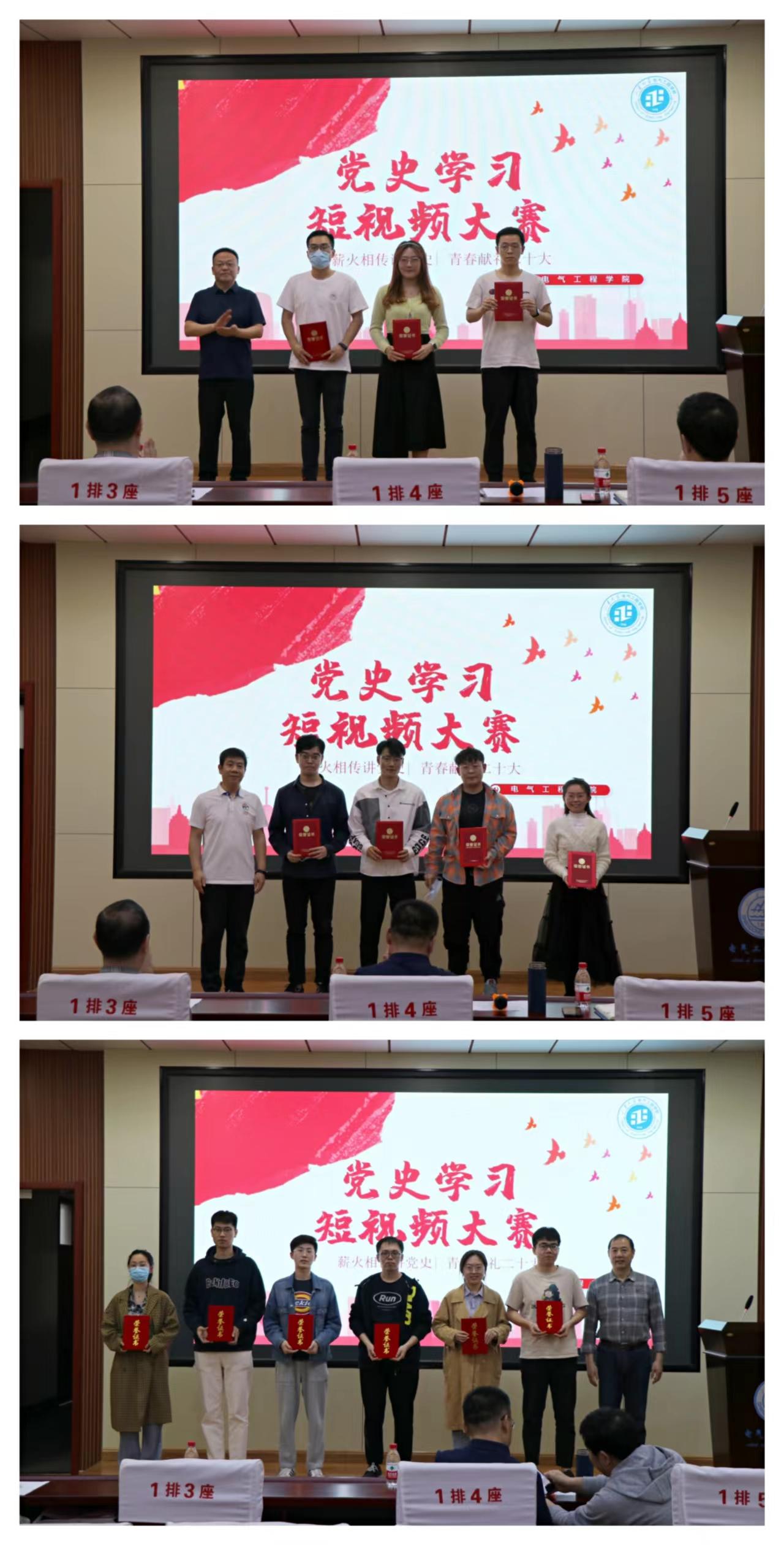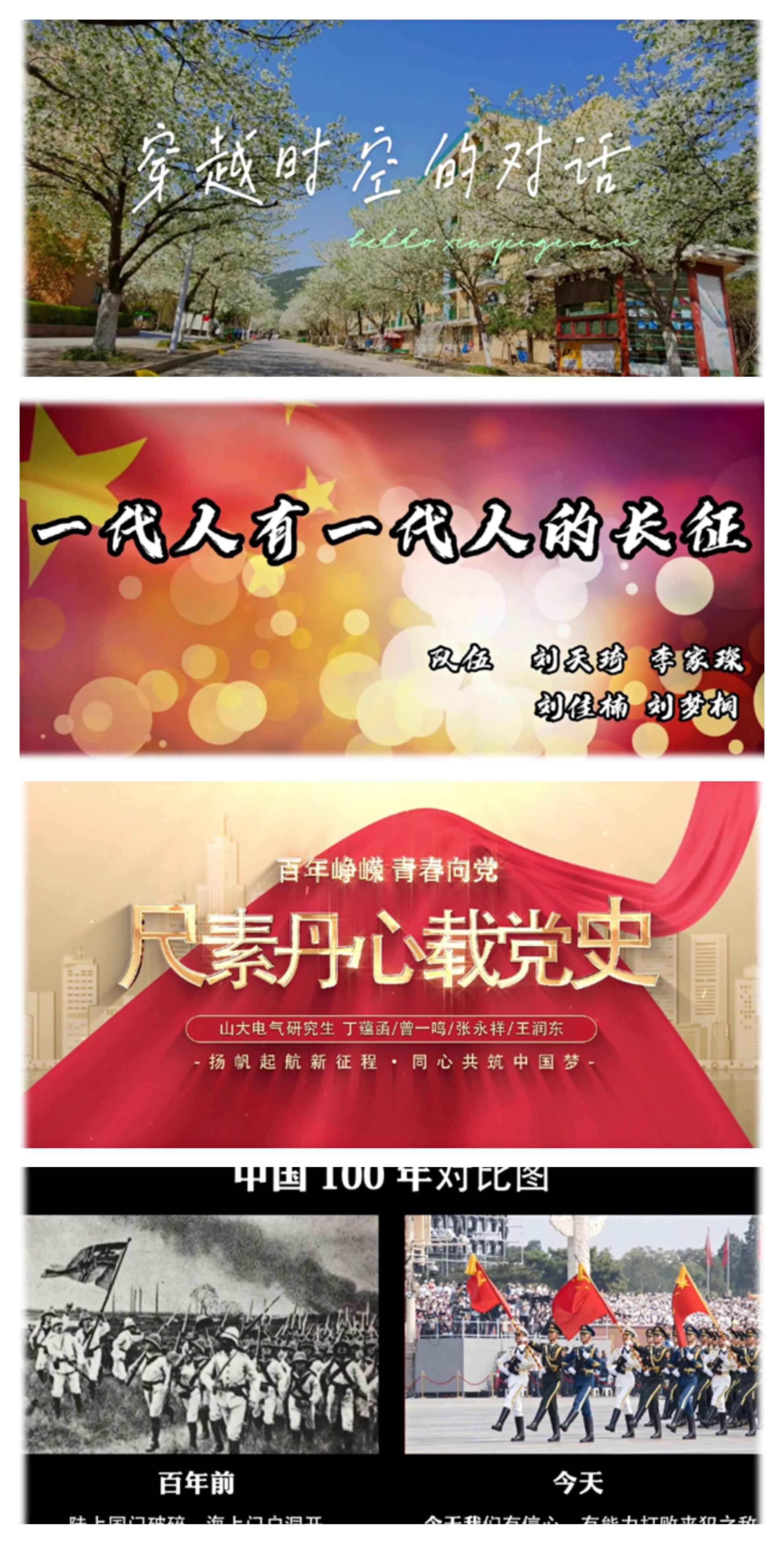 决赛场上,13部优秀短视频作品独具匠心、立意深远,以宏大的时代主题为背景,以微小的观察视角为切入点,用感人肺腑的视听效果,真实立体地展示了电气学子的党史学习成果。有的作品借鉴“青年大学习”的形式,绘声绘色地讲述着党的百年奋斗历程;有的作品用百年对话的形式,与一百年前的革命先辈们展开了一场深入灵魂的对话;有的作品用视频剪辑的形式,将先辈们抛头颅、洒热血的英雄故事讲述得催人泪下;有的作品用情景再现的形式,讲述着一代又一代共产党人一心向党、矢志报国的故事。既讲述了党百年历史中的宏大历史转折,令人心潮澎湃;又不乏党史中感人至深的浓情瞬间,令人潸然泪下。