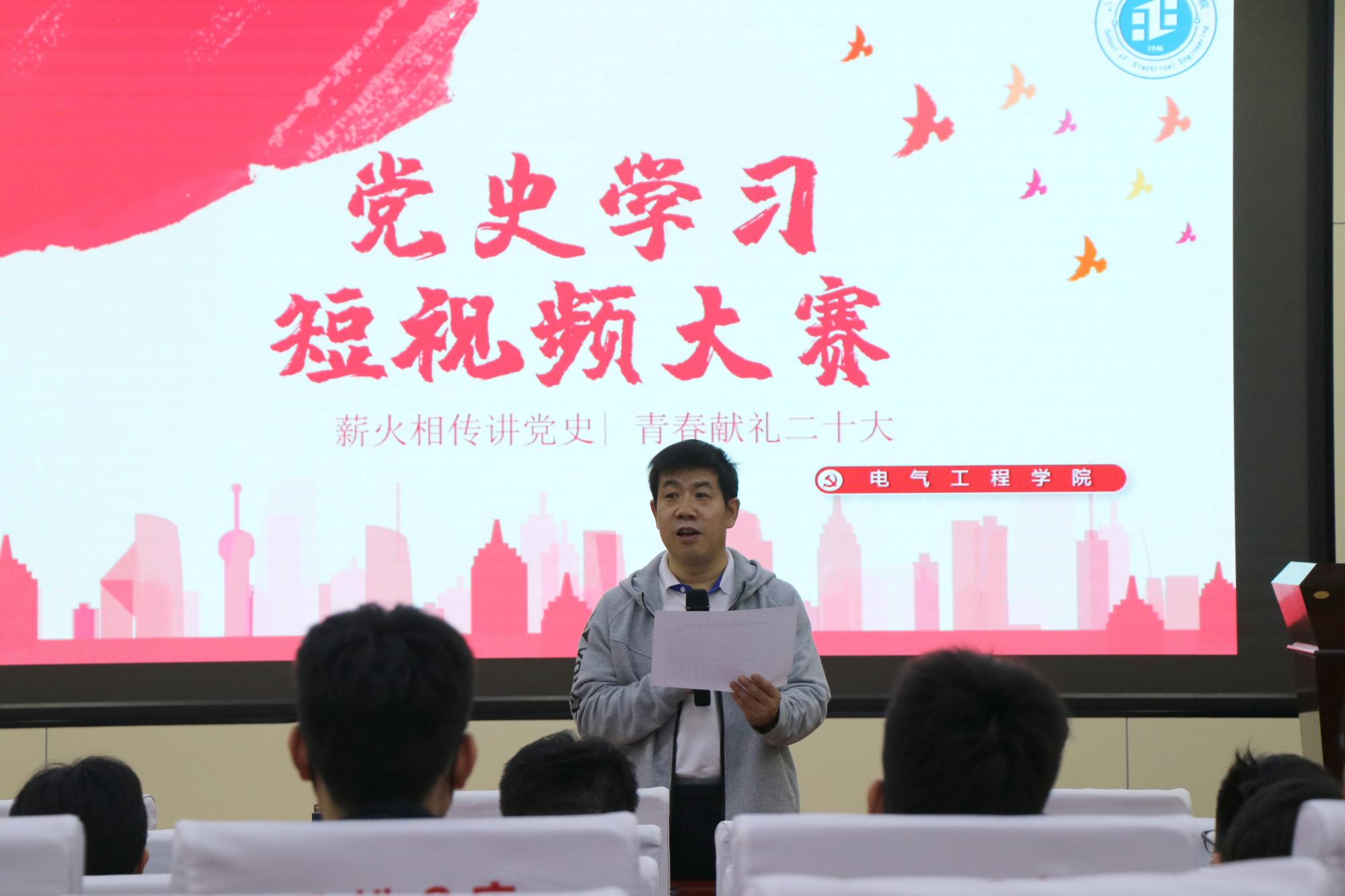 作品展示完毕后,党委副书记宋思利对本次短视频大赛进行了致辞和点评。宋思利首先对参赛选手的精彩作品表示高度赞扬,表示电气学子的党史学习作品立意之深远、视角之独特、创意之新颖令人赞叹。其次他肯定了本次短视频大赛的意义,表示本次比赛很好的体现出了yl23411永利集团官网登录党史教育的成效,必将让同学们对党的百年奋斗历史有了更深刻的理解,帮助同学们从党史中汲取力量,以更饱满的热情投入学习和工作,以更坚决的态度打赢疫情防控阻击战。