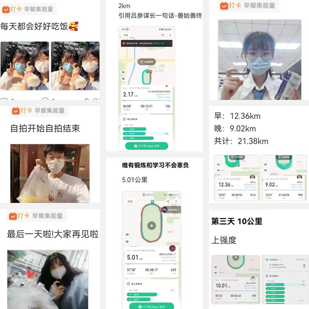 霭霭四月,新树成荫。这个春天虽然特殊,但灿烂依旧。一年之计在于春,为了让同学们养成良好的作息习惯,保持良好的精神状态和身体状况,我院特举办了“抗疫在校,晨光悦跑急能量”打卡活动。借助“小打卡”平台,建立“早餐集能量”圈子和“跑步集能量”圈子,同学们拍照、截图上传到对应的打卡圈子完成打卡。晨光洒在同学们的脸庞,汗水沾湿了衣襟,电气学子们让这个春天有了别样的意义。通过为期14天的打卡,培育了学生坚韧不拔的意志和持之以恒的精神,锻造了学生的自律品格。