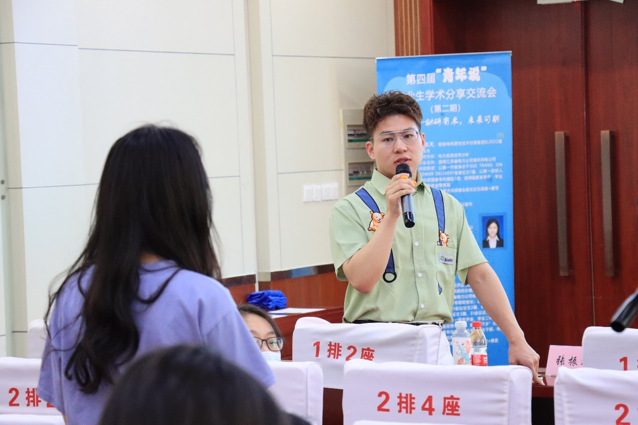 接着,新形态电网保护与控制团队2022届毕业生孙守晶就“中文期刊写作与科研工作收获”为主题进行分享,讲述了“更深”的科研论文写作与“更宽”的研究生生活。她谈到,在科研前期,一定要多读文献,总结创新点;着手写作时,算例与写作双线进行,格式规范,螺旋上升;投稿时,要敢想、敢投,抬高自己的天花板。同时,孙守晶谈到,要平衡好自己的科研和学生工作,如果冲突,要学会多线程并进,特殊时间节点要付出更多,她强调,不论做何种学生工作,手头的科研一定不能落下,学术科研是研究生最根本的事情。