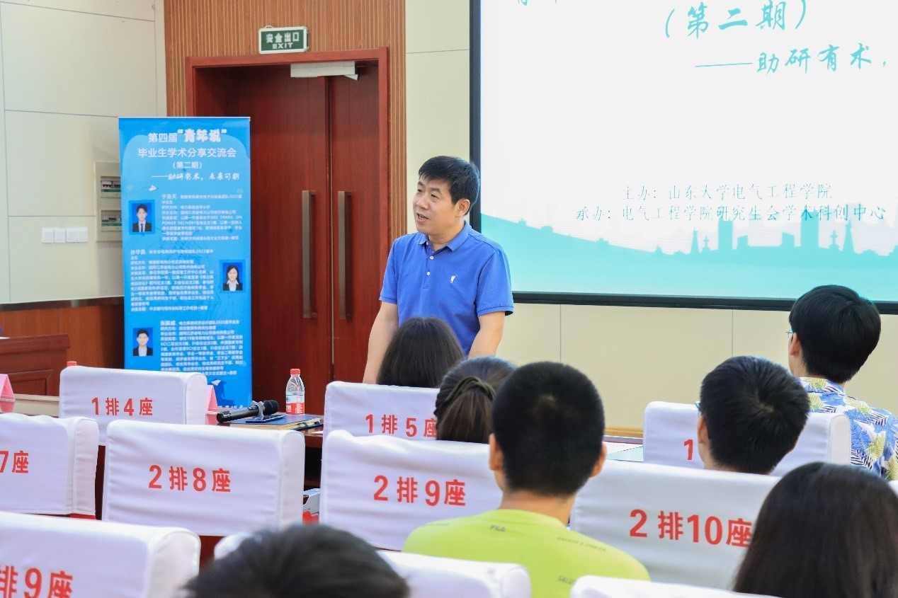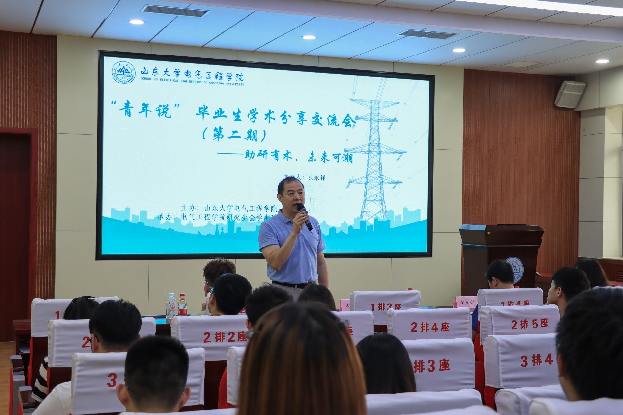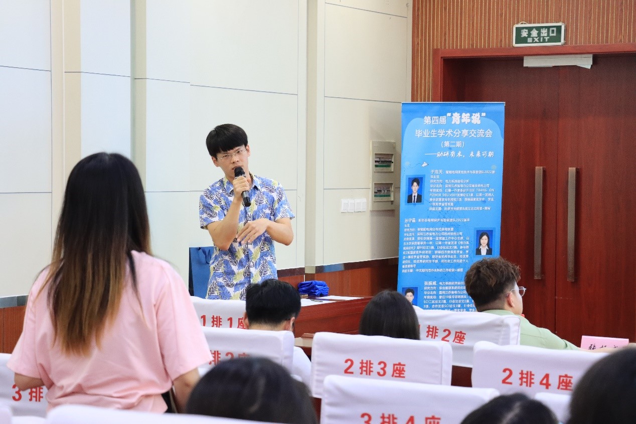 2022年6月17日下午3点,由yl23411永利集团官网登录主办、研究生会学术科创中心承办的第四届第二期“青年说”毕业生学术分享交流会在电力楼四楼报告厅成功举办。本次交流会主题为“助研有术,未来可期”,交流会邀请了于浩天、孙守晶、张振威三位学术科研方面成绩优异的毕业生为大家分享经验,学院党委副书记宋思利、研究生办公室主任宋济平出席本次活动并致辞,交流会由学院研究生会学术科创中心成员张永祥主持。