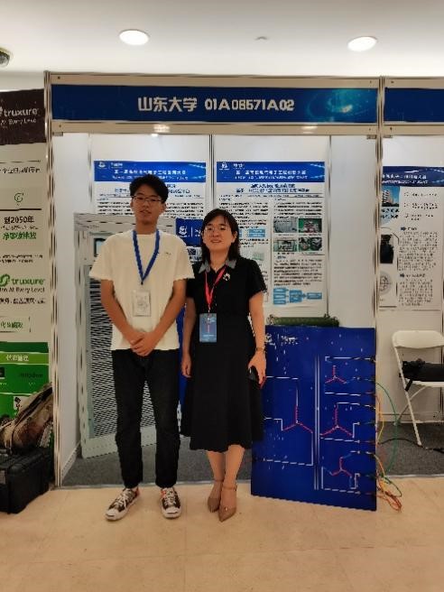 参赛学生张硕与指导老师孙媛媛教授在展位前合影