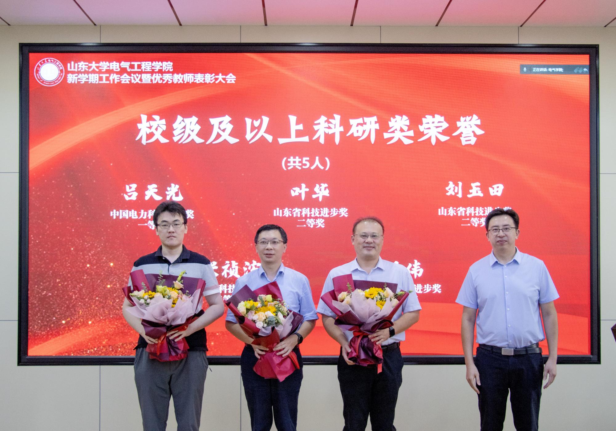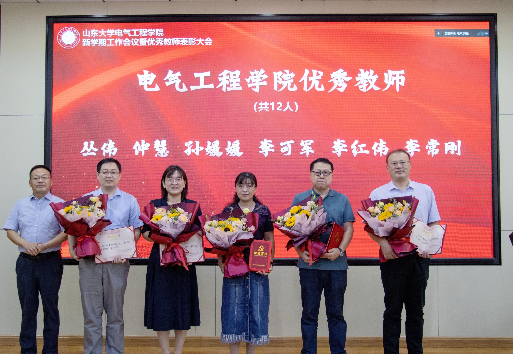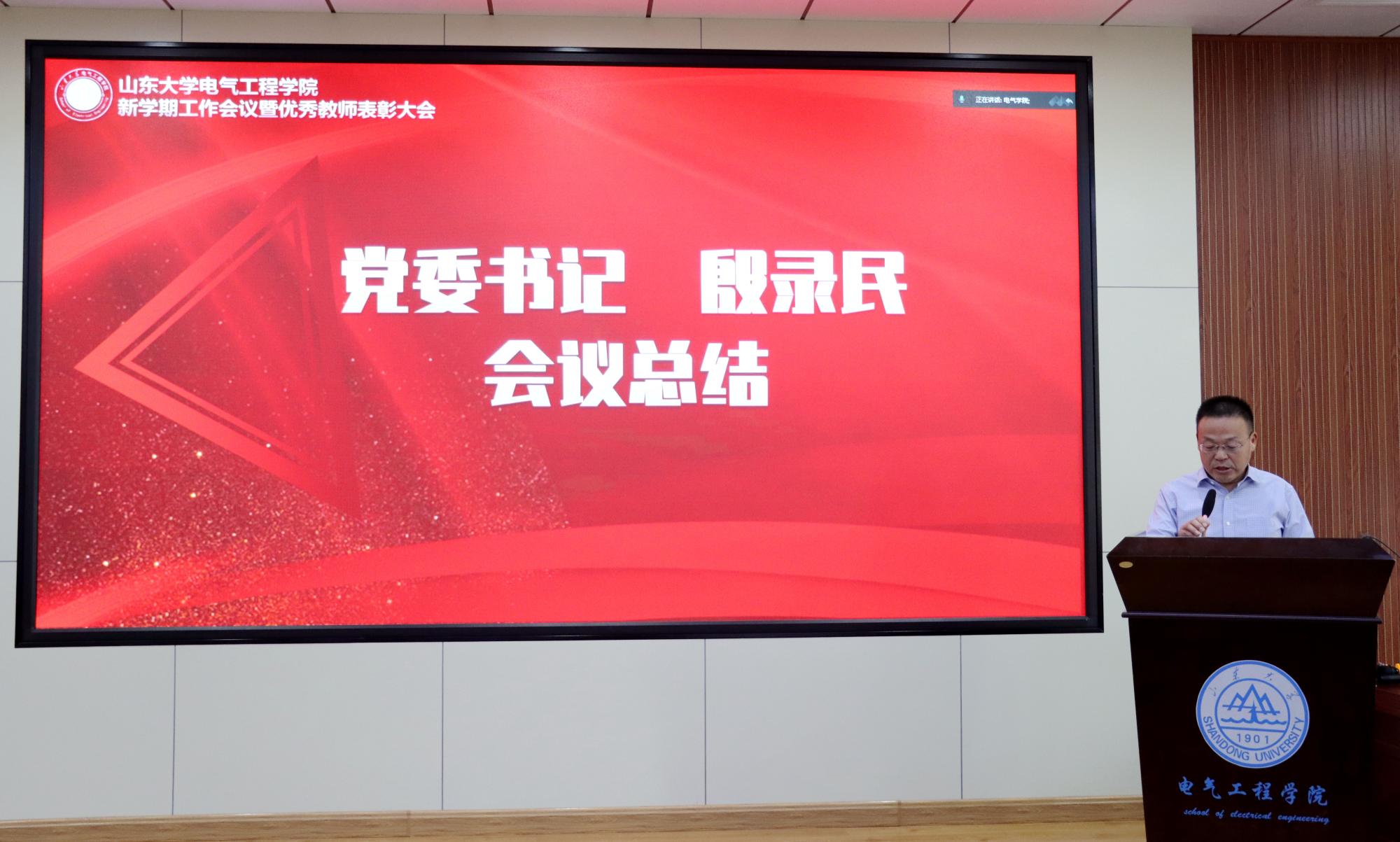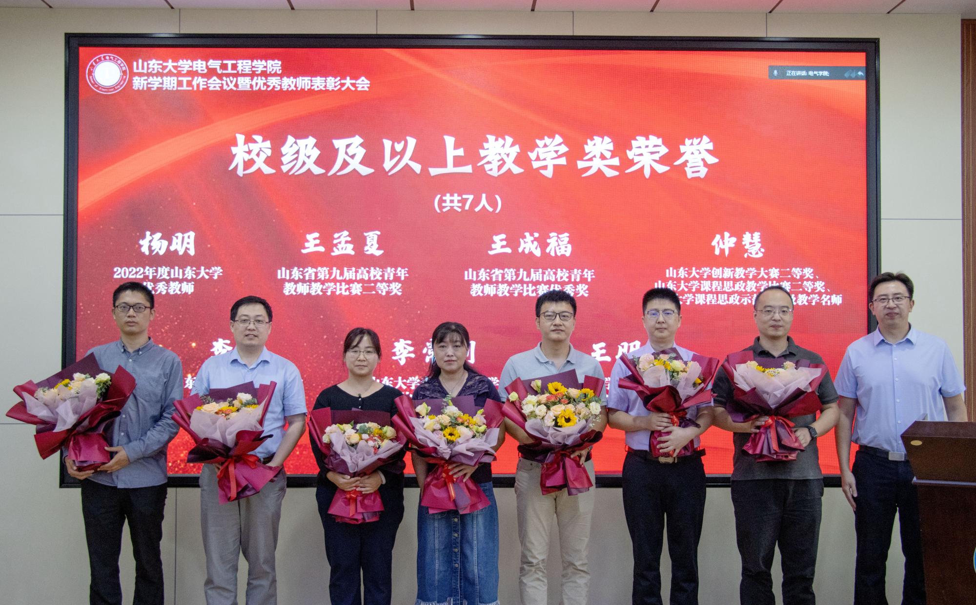 9月22日,yl23411永利集团官网登录在千佛山校区4楼报告厅举行“坚守教育初心,勇担光荣使命”——2022年秋季新学期工作会议暨优秀教师表彰大会。部署新学期重点工作,表彰在教书育人、科学研究、管理服务各工作岗位上踏实进取、爱岗敬业的优秀典型和模范代表。党委书记殷录民、院长丁磊、领导班子全体成员、获奖教师及青年教师代表等60多人参会,学院其他教师通过腾讯会议视频同步参加。党委副书记宋思利主持会议。