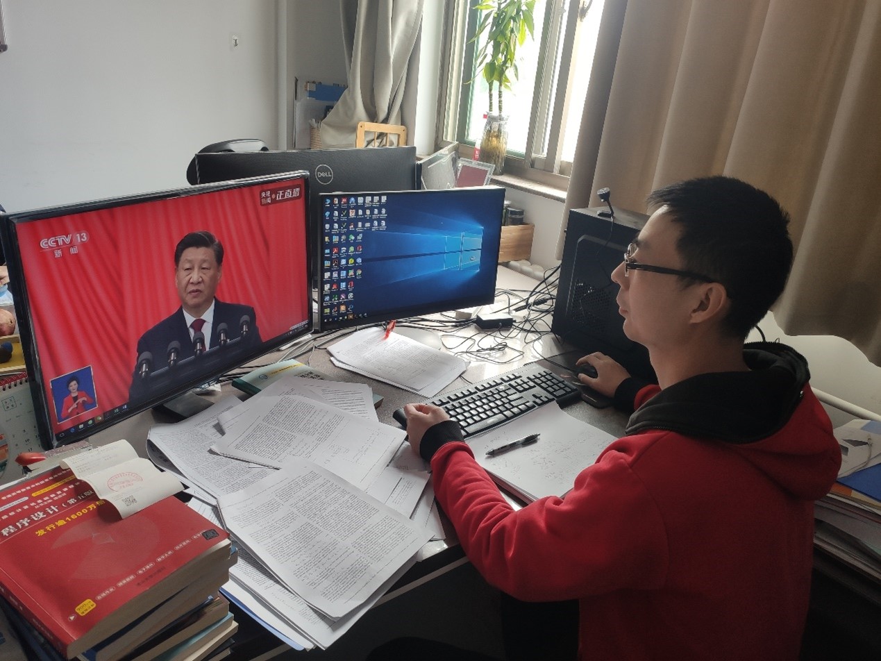 2020级学硕党支部董玉展说:“作为一名党员学生干部,我与党同频共振、同向同行,深刻感受到了党凝心聚力引领中国、圆梦中华的强大力量,我将自信自强、守正创新,为全面建设社会主义现代化国家、全面推进中华民族伟大复兴贡献一己之力。”
