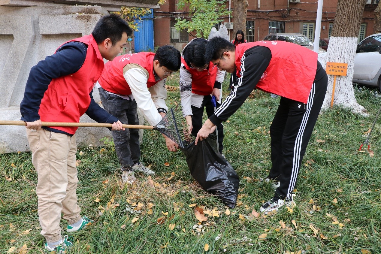 在后勤部老师的带领下,同学们一起进行了第一次劳动教育实践活动。老师和志愿者们分成两个小队,分别清扫5号楼南侧两处草坪里的杂物。草坪树叶分布复杂,不好收集到垃圾袋中。老师发挥模范带头作用,杨明老师以身作则,耐心教给同学们如何使用耙子聚拢草坪中的树叶。同学们认真听取后勤部老师的清扫经验,互帮互助,积极劳动,顺利完成了清扫任务,彰显了电气学子良好的团队合作精神。