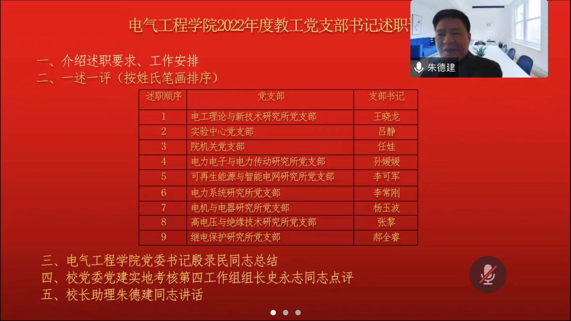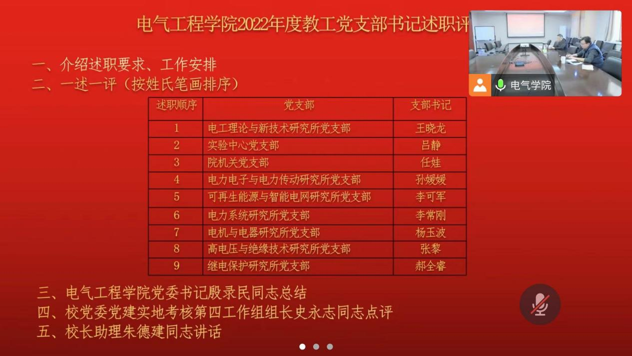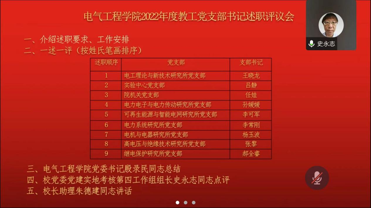 12月29日下午,我院2022年度党支部书记述职评议考核会举行。山东大学校长助理朱德建同志、校党委党建工作考核组第四工作组组长史永志同志出席教工党支部书记述职评议会并讲话。yl23411永利集团官网登录党委书记殷录民、院长丁磊参会,殷录民同志主持会议。