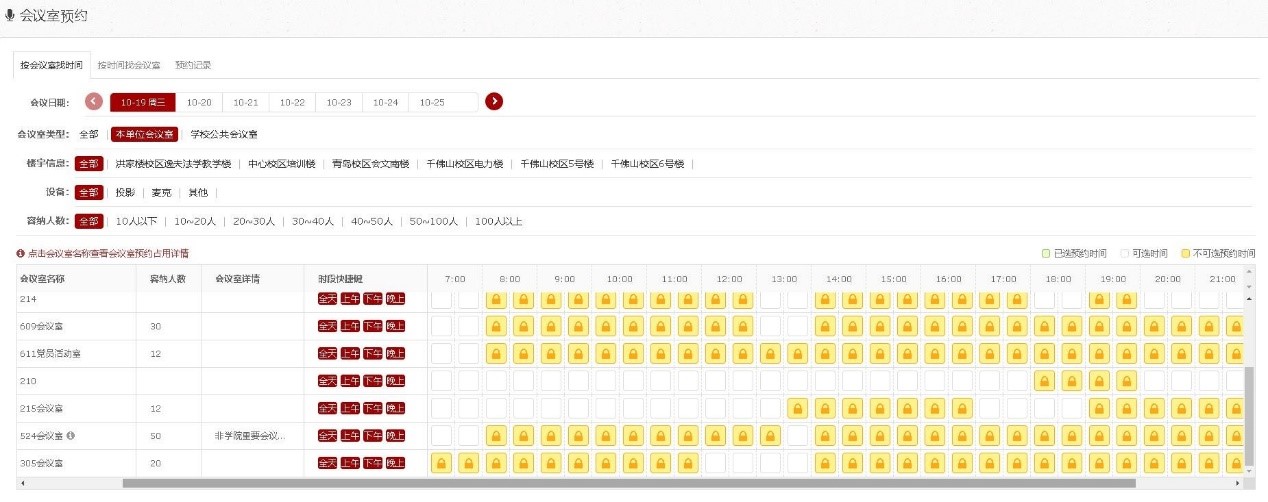 学院对会议室进行升级改造,增设无线投屏、远程会议系统、音视频系统,建成10个智慧会议室;建设智慧会议室管理系统,通过预约界面与门禁系统的联动,师生可随时查看会议室占用情况、提交预约申请,使用校园卡或通过人脸识别即可使用会议室。
