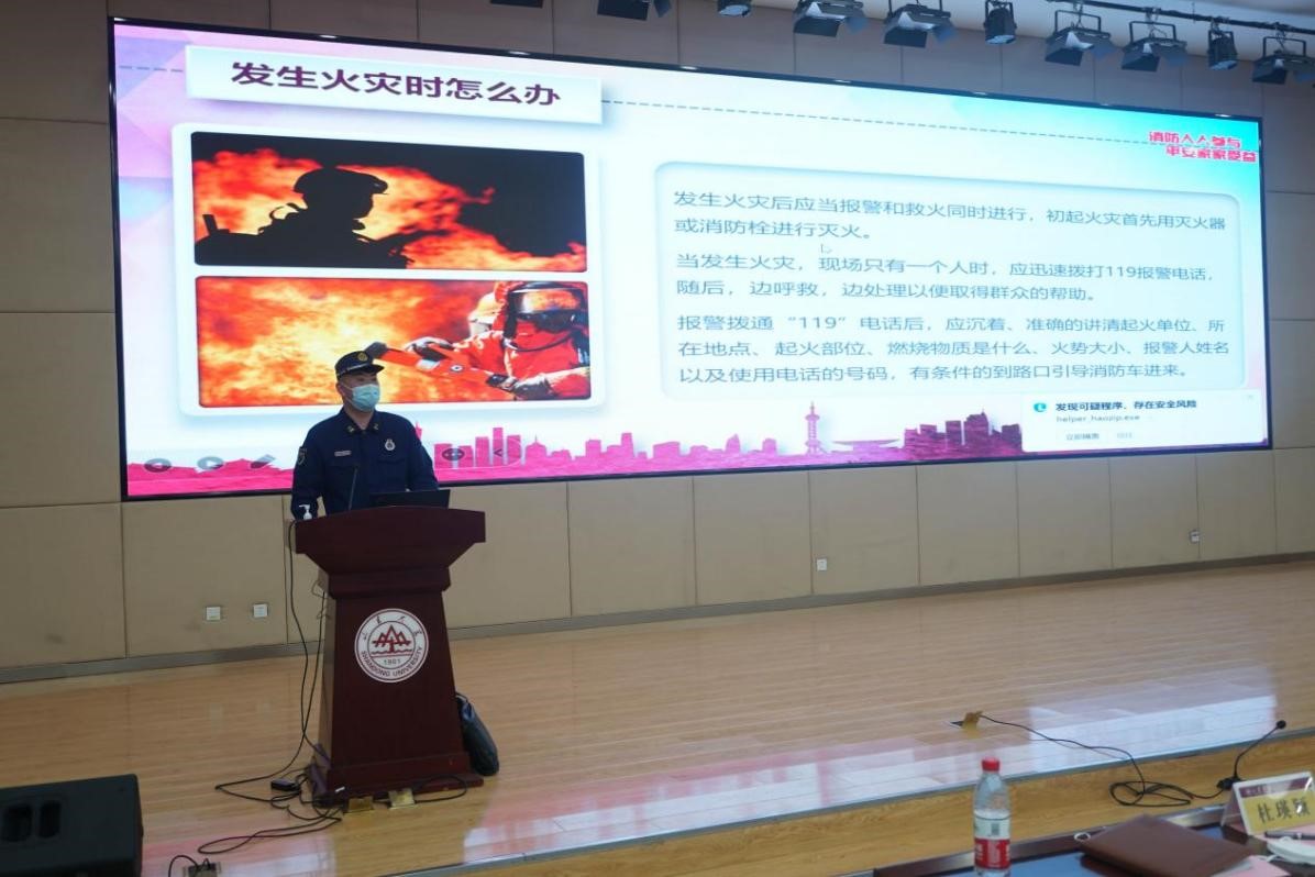 在专题报告环节,张丹强以“雷电、地震、火灾等灾害的危害与应对”为主题,详细讲解了雷电、地震和火灾防范及应急救援的知识;周冉以“防汛防洪”为主题,重点讲解了防汛防洪知识和如何增强抗灾自救能力;伊兵以“交通安全”为主题,让同学们对交通安全有了更直观的认识;秦高展以“消防救援”为主题,让同学们对消防安全有了更深入的体悟;杜瑛颖则聚焦校园安全教育进行专题讲解,重点解析了电信诈骗相关内容。