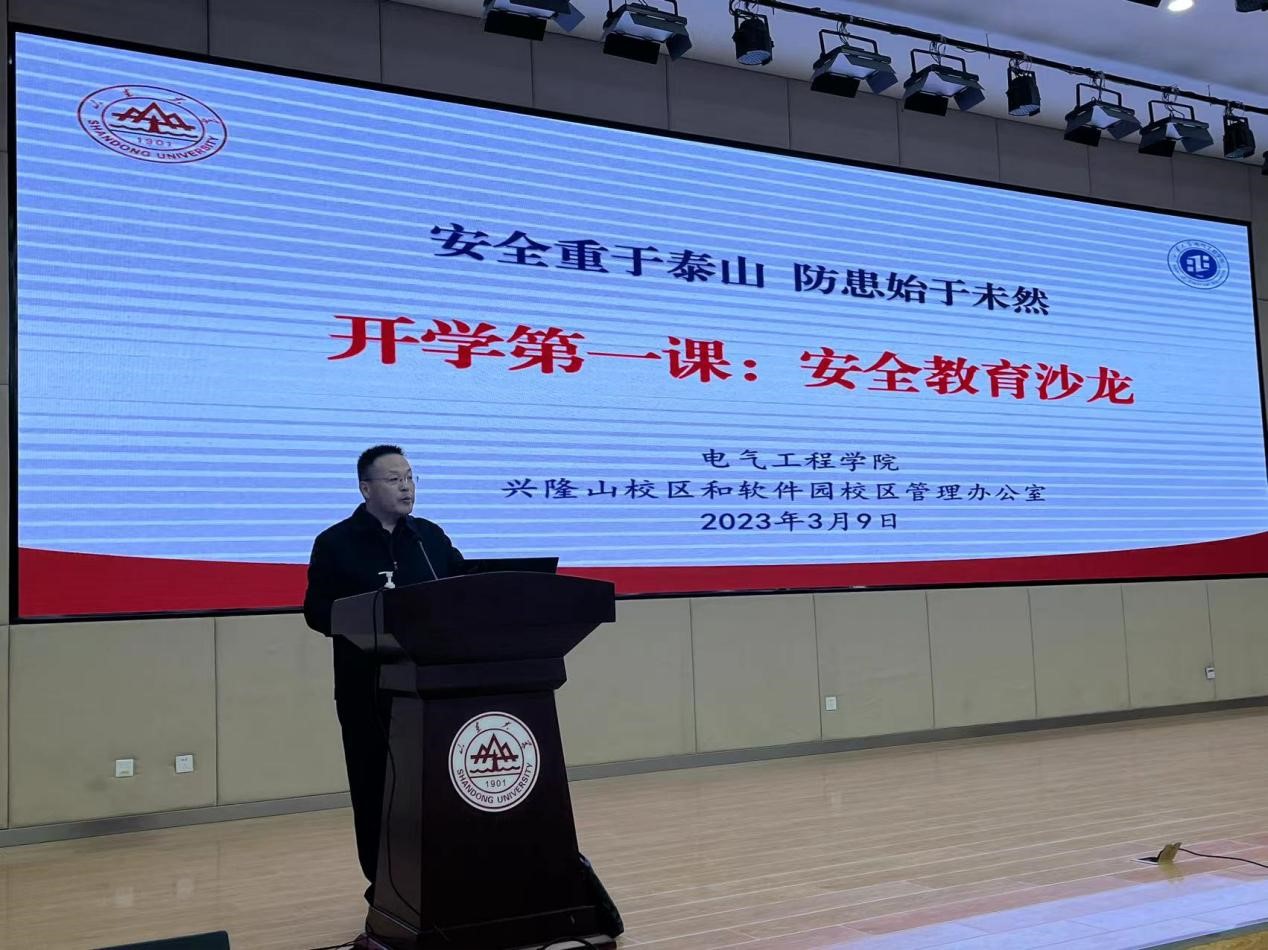 yl23411永利集团官网登录党委书记殷录民在致辞中说,安全重于泰山,为深入学习贯彻党的二十大精神,践行总体国家安全观,yl23411永利集团官网登录结合《<山东省学校安全条例>实施细则》和学校工作部署,融合联动校内外安全教育资源,加强学生安全教育和培训,组织开学第一课:安全教育沙龙活动。这是国家和社会对青年学子的关心和爱护。通过本次教育活动,强化安全意识,切实筑牢学生安全防线,推进学生安全工作行稳致远。他对同学们提出三点要求:一是牢固树立安全责任意识,切实从思想上提高认识,坚决对破坏校园安全的行为说不,做好自身安全的第一责任人;二是着力强化行为安全规范,自觉遵守法律法规及学校安全管理有关规定,切实提高自律意识、安全防范意识和应急避险能力;三是密切关注心理健康安全,正确认识自我,积极悦纳自我,增强抗压能力,保持心理平衡协调。