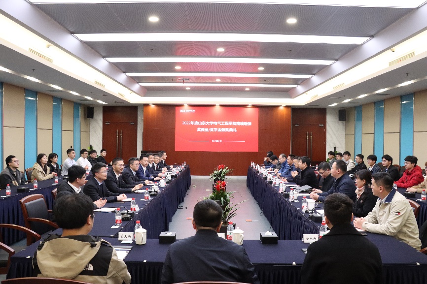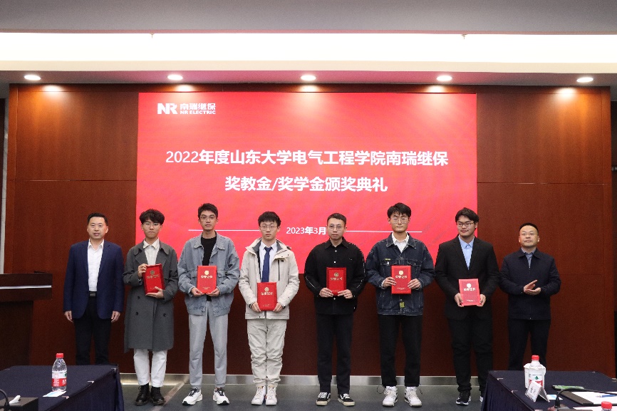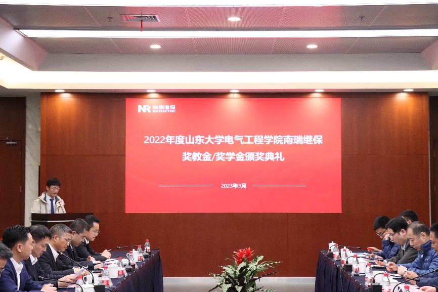 颁奖环节,宋思利宣读《关于表彰2022年度“南瑞继保”奖学金获得者的决定》,殷录民、李九虎向获奖教师和学生颁发证书。