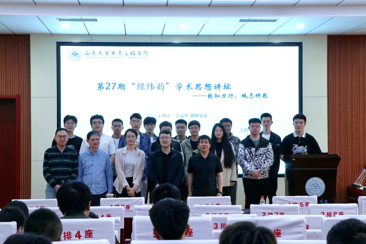 宋思利作总结致辞。他表示自己非常关注“经纬韵”等相关学术讲坛的举办,对王冠中老师的到来以及学术科创中心同学们的辛苦付出表示感谢。希望同学们能够以王冠中老师为科研榜样,积极参加“电力杯”、“研究生数学建模竞赛”等科研学术活动,拓宽自身视野,提升创新水平,将个人理想与国家需要相结合,刻苦学习,全身心投入科研工作中,为国家电力事业的发展作出贡献。第27期“经纬韵”研究生学术思想讲坛在掌声中圆满结束,与会师生合影留念。