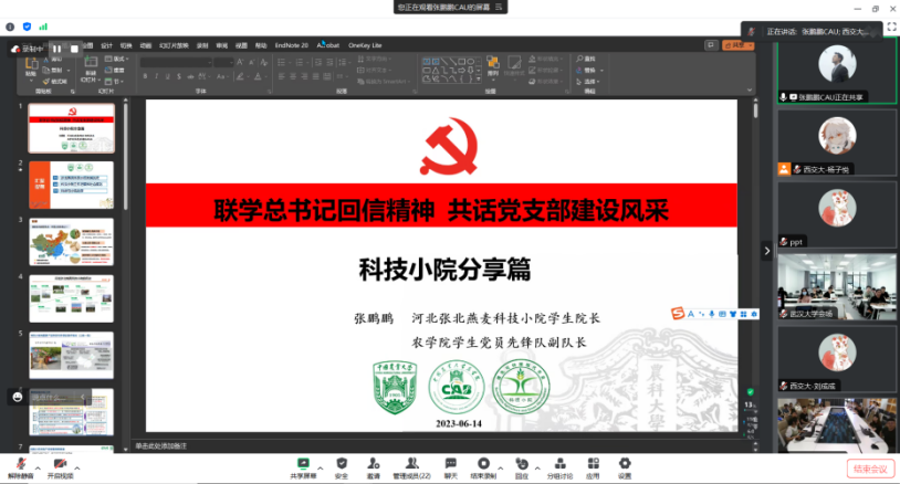 在联学习近平总书记回信精神后,四校依次进行党支部建设经验分享,共话党支部建设风采。