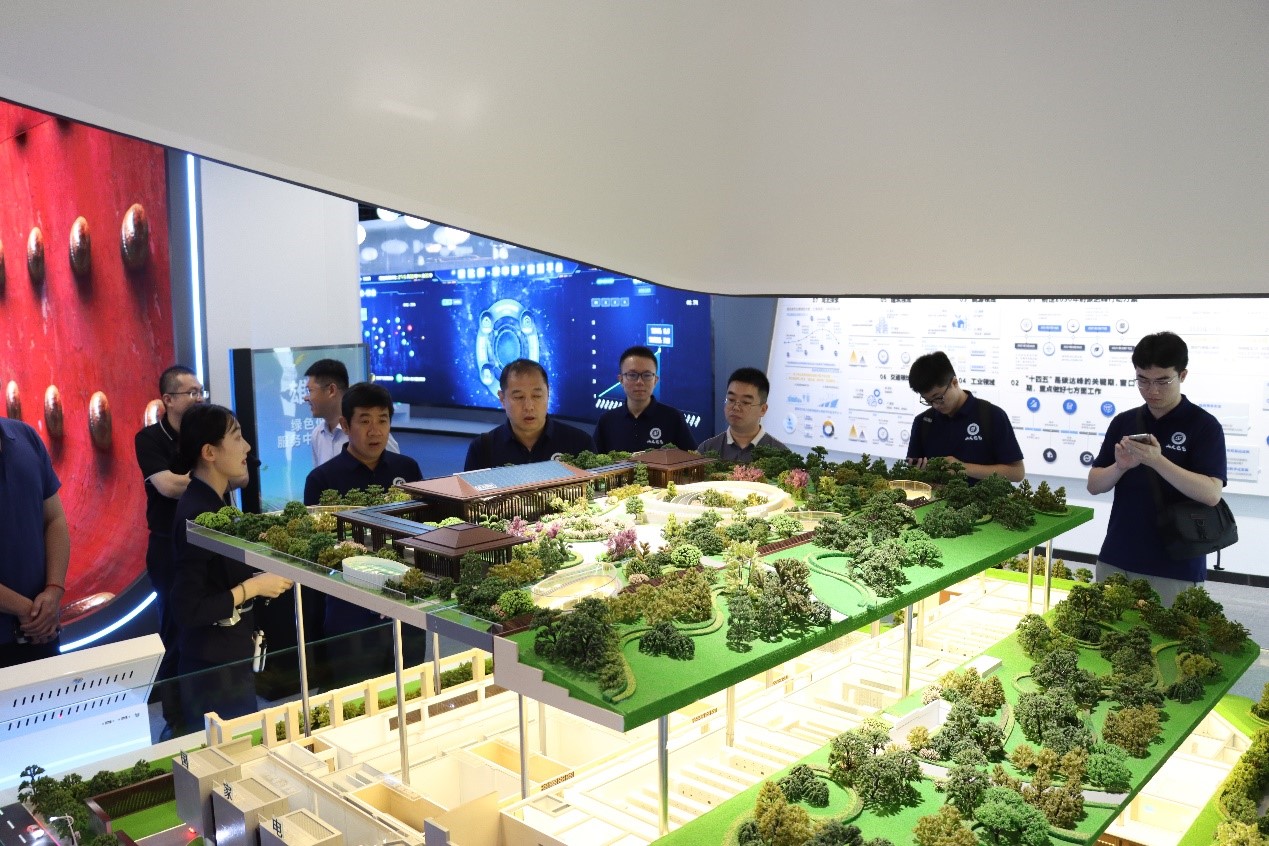 7月25日,实践团来到雄安新区,一睹梦想之城的风采。队员们在综合服务中心了解到了雄安启动区的规划建设和建筑风貌设计成果,在商务服务中心学习到了雄安新区一流的电力建设成果,在容东供电服务中心体会到了新型电力系统的建设情况。220千伏剧村智慧融合变电站的见闻更是令队员们震撼。剧村站将公园地形和变电站融合在一起,站顶打造开放式花园广场,错落有致、层次分明。在参观剧村站拓展出的智能充放储电站、综合能源服务站、绿能健身体验站等多重功能时,队员们不禁赞叹变电站也能处处体现创新,“科技感”十足。