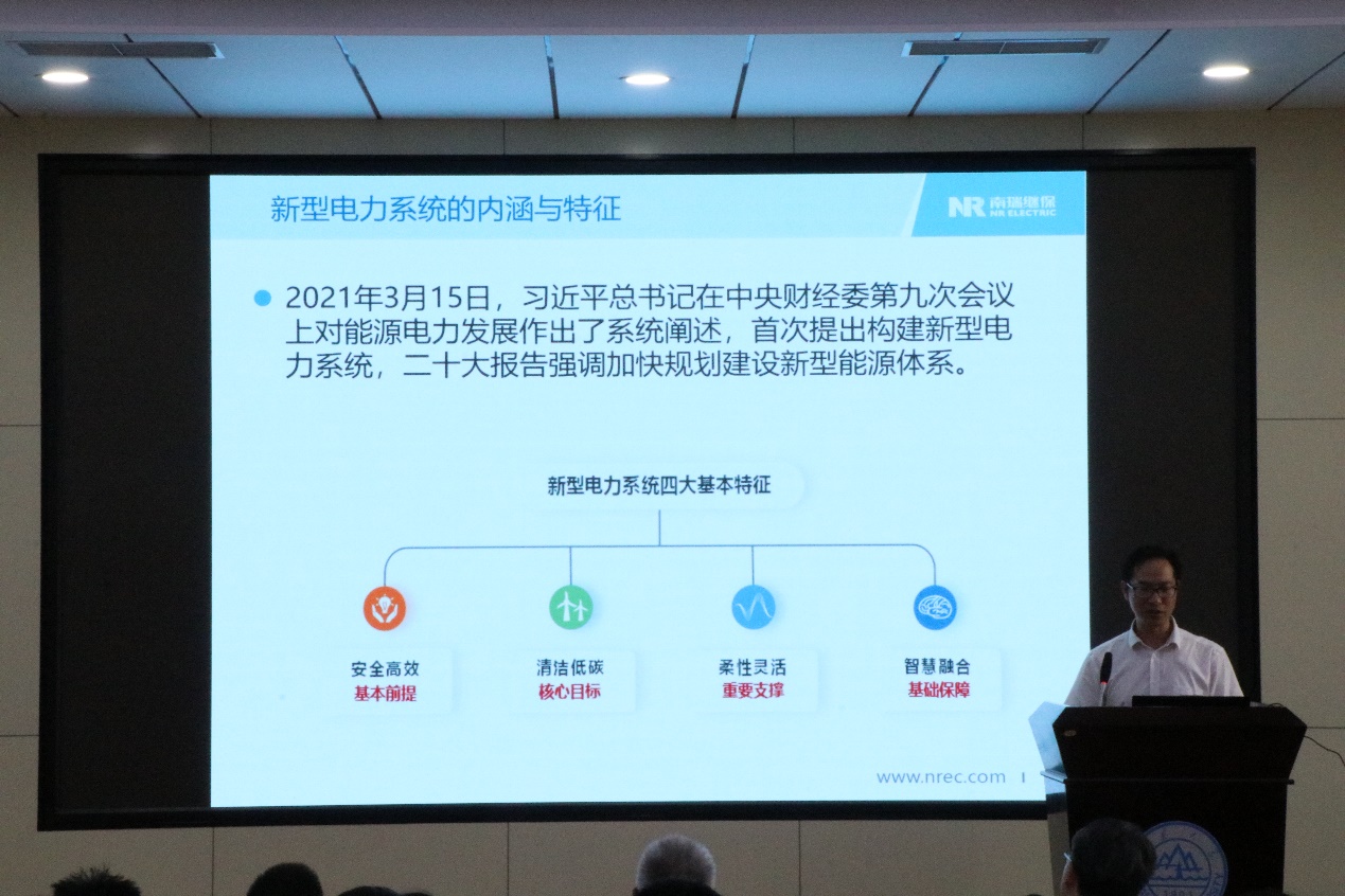 何俊峰从当前电网面临的主要风险与挑战、应对挑战的思路和技术框架以及NR推动新型电力系统构建的实践等内容进行讲解。同时,何俊峰对构网型储能技术及研究进展、大电网典型柔性控制技术、宽频带振荡防控关键技术和新能源快速功率控制技术四部分内容进行了着重介绍,讲解了构网型STATCOM、构网储能电站建设情况和柔性直流输电技术目前的应用情况,讲解方式由浅入深,方便理解。