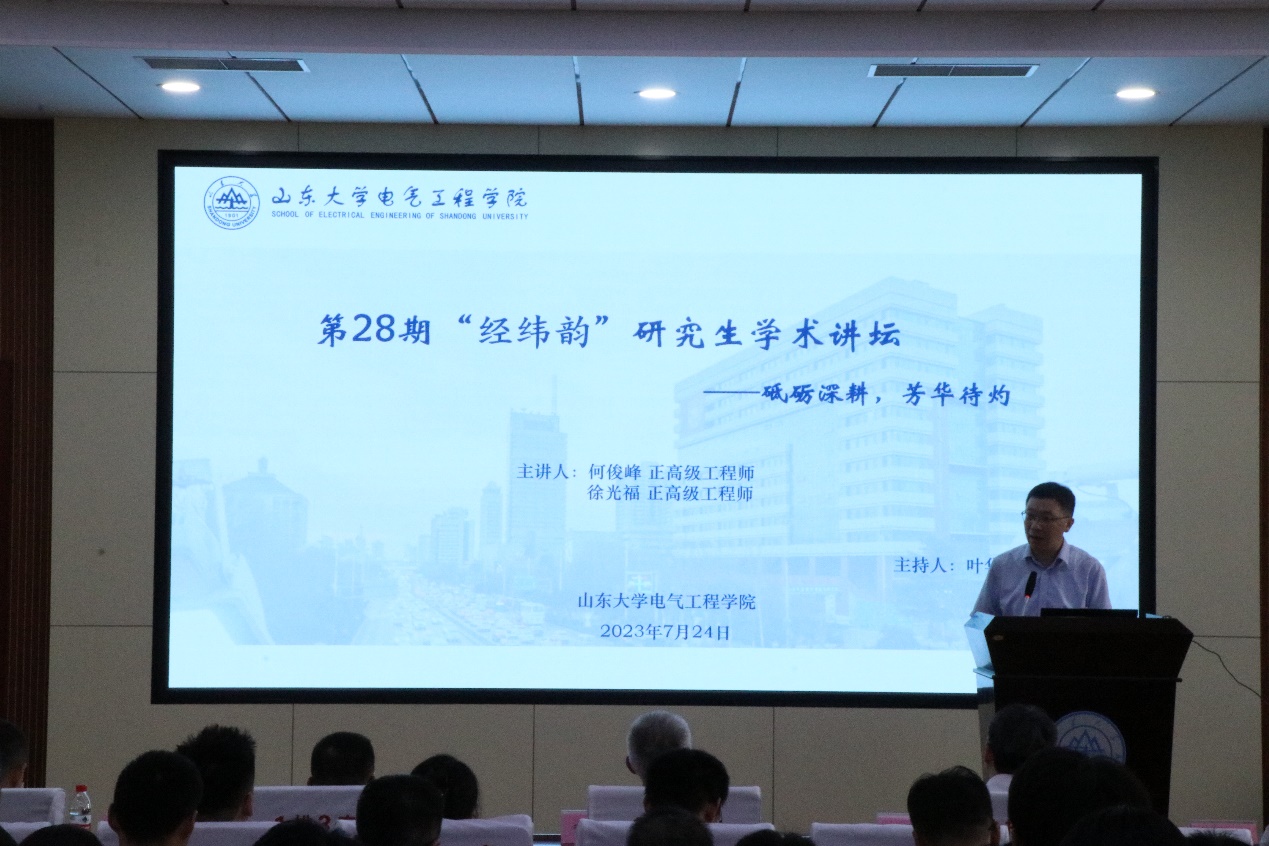 7月24日,yl23411永利集团官网登录第28期“经纬韵”研究生学术思想讲坛成功举办。讲坛邀请南瑞继保研究院电力系统分析研发专家何俊峰、部门经理徐光福分别以“推动新型电力系统建设的关键技术研究与实践”、“有源配电网控制保护技术”为主题分享。南瑞继保电气有限公司研究院党委书记、副院长李海英、研究所副总工张春合、yl23411永利集团官网登录党委书记殷录民、院长助理、教授孙媛媛及学院教师、学生代表出席活动。讲坛由yl23411永利集团官网登录副院长叶华主持。