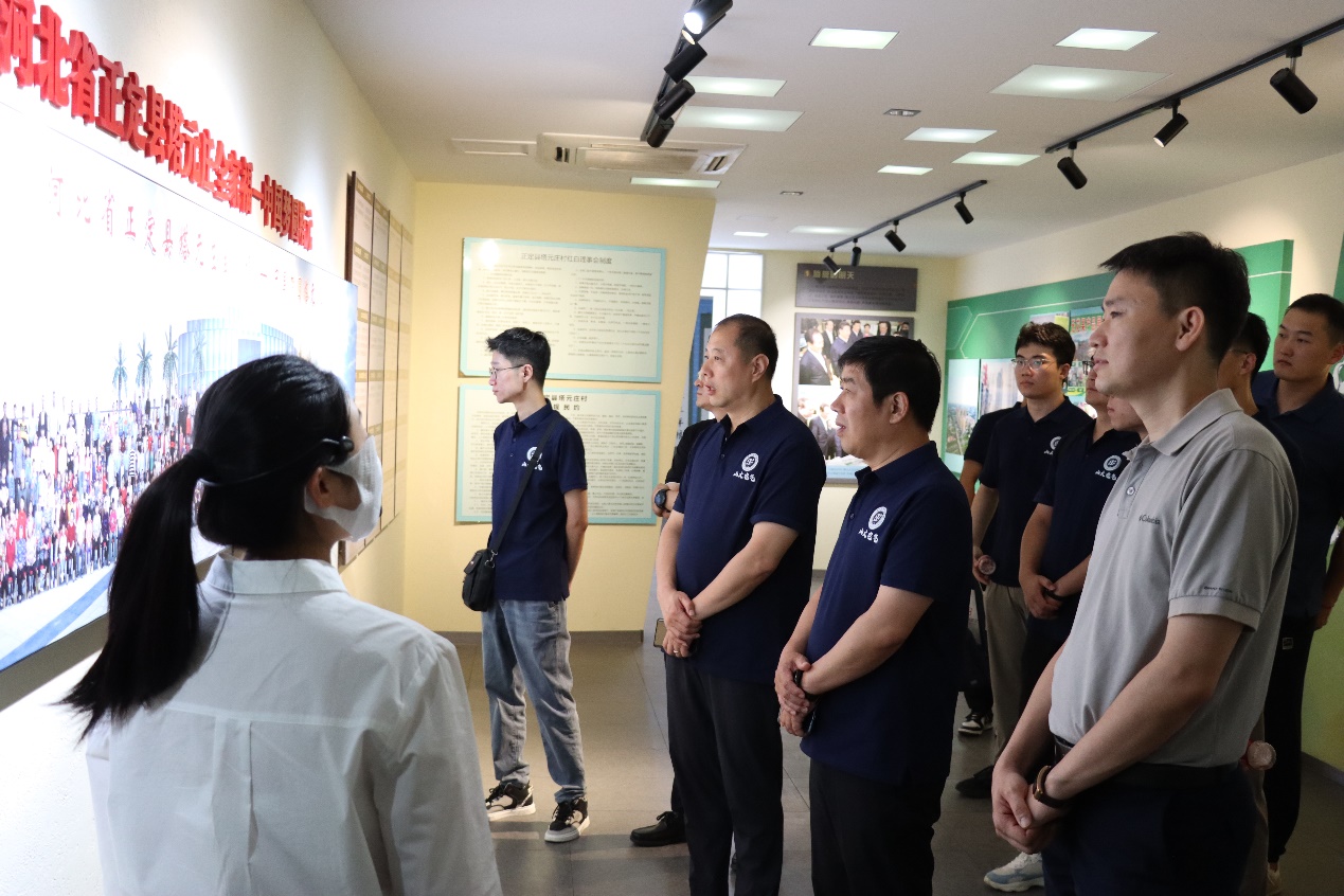 正定县塔元庄村是红色研学实践的第一站。正定县是习近平总书记从政开始的地方。从讲解员的介绍中,实践队队员了解到,起初的塔元庄村,只是冀中平原上一个不起眼的小村落,这里的人们“挣扎”在温饱线上,终日在田间劳作。针对正定县紧邻省会的区位特点,在习近平总书记的重要指示批示下,塔元庄村委村支部紧密团结,发奋图强,带领全村人民走上了脱贫致富的道路,新农村建设事业蒸蒸日上,农村面貌焕然一新。看到塔元庄村翻天覆地的变化,师生们不禁感慨乡村振兴为广大人民带来的巨大便利。