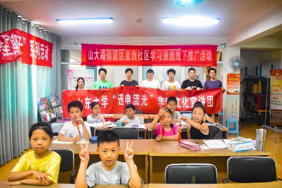 弘扬文化瑰宝,传承千年古韵。山东大学“迅电流光”非遗文化宣讲团于暑期赴济南市七西社区、舜德社区、区直西社区和草城社区进行了线下非遗文化宣讲。团队经过前期调研,确定宣讲内容为义乌红糖、东营吕剧、潍坊风筝、云南白族三道茶、聊城葫芦雕刻及日照黑陶等六项非物质文化遗产。团队成员通过精心准备和亲身实践,为当地工作人员和群众带来了精彩的非遗文化宣传。宣讲致力于激发大众对非遗文化的热情和喜爱,希望所有人都能了解、体会非遗文化之美,传承文化古韵,在新时代赋予非物质文化遗产新的活力。