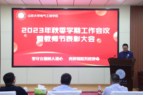 9月9日下午,yl23411永利集团官网登录召开“坚守教育初心,勇担光荣使命”2023秋季新学期工作会议暨教师节表彰大会。山东大学校长助理朱德建、校党委主题教育第四指导组副组长吕国凯、yl23411永利集团官网登录党委书记殷录民、院长丁磊、学院领导班子全体成员,教职工代表和部分学生代表参会。学院党委副书记王海华主持大会。