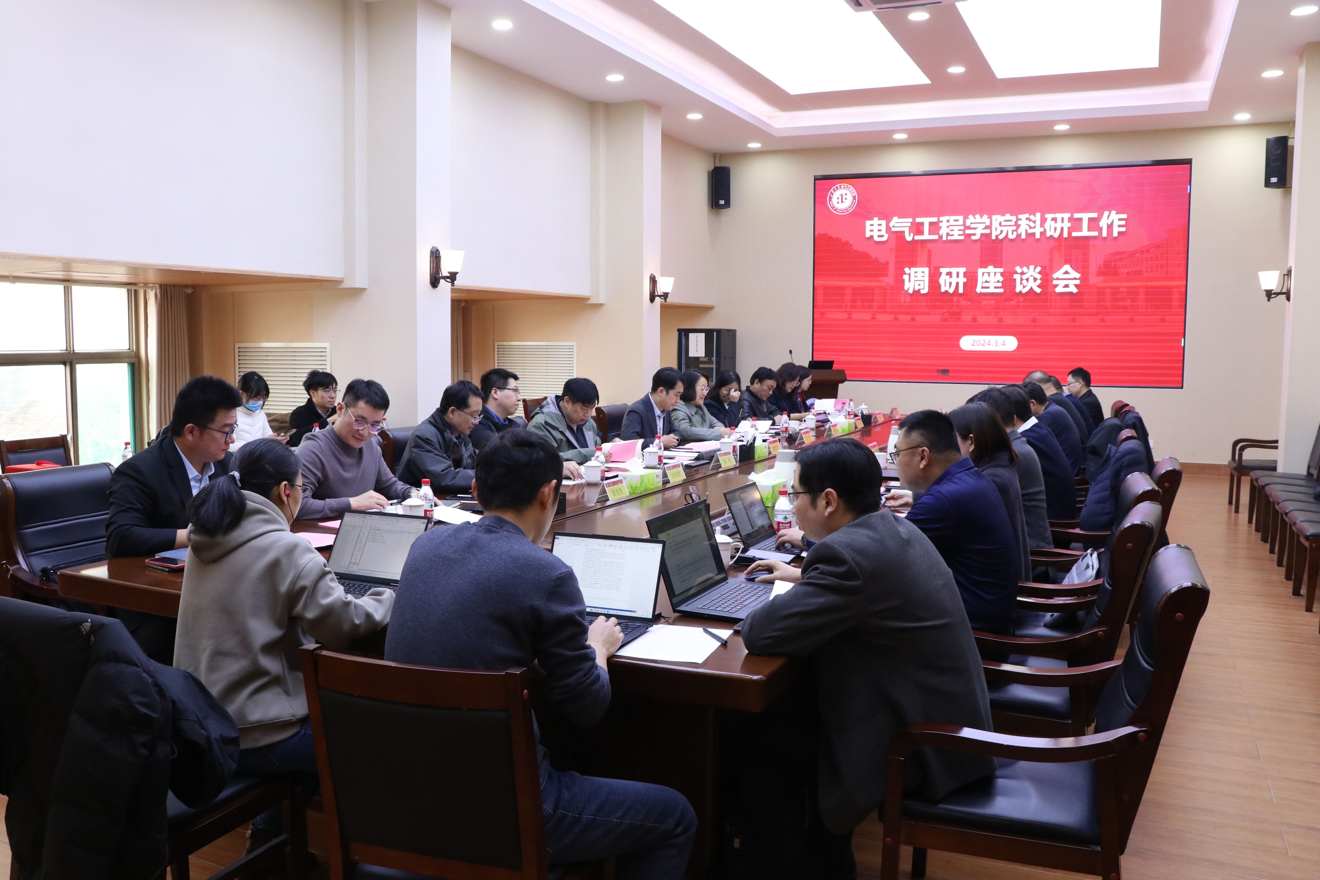 丁磊汇报了近年来学院在科研平台建设、科技创新人才、科研经费、重大重点项目、技术转移转化,校企合作等方面取得的成绩和未来三年预期发展目标。他表示学院将紧密围绕国家能源转型要求,坚持“四个面向”、服务“国之大者”,切实提升学院的有组织科研能力,加强新型电力系统研究,争取学院学科建设和科研工作再上新台阶。