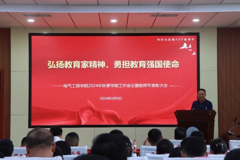 9月9日下午,yl23411永利集团官网登录在电力楼四楼报告厅召开2024年秋季学期工作会议暨教师节表彰大会。大会主题为“弘扬教育家精神,勇担教育强国使命”。学院党委书记殷录民、院长丁磊出席会议。殷录民讲授专题党课,丁磊传达学校会议精神并部署学院工作。党委副书记王海华主持会议。