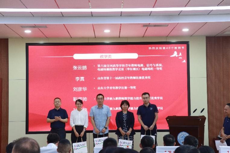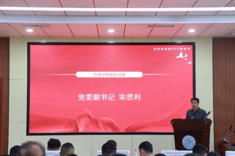教师节前夕,学院积极开展弘扬教育家精神学习活动,并评比了优秀共产党员、优秀党务工作者、先进党支部、优秀教师、先进教育工作者等一批学院荣誉称号。学院党委副书记宋思利宣读院级表彰决定。殷录民、丁磊为获奖教师颁奖。