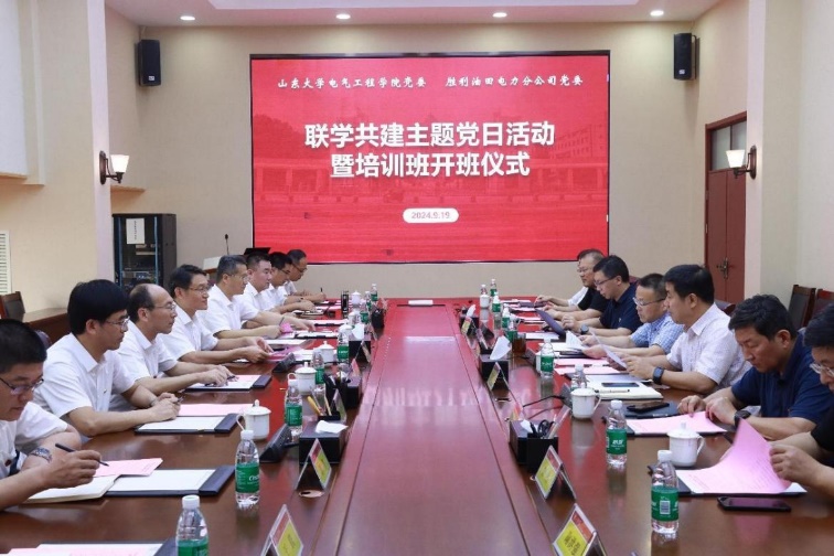 为深入学习贯彻党的二十届三中全会精神,推进联合共建走深走实,9月19日,yl23411永利集团官网登录党委与胜利油田电力分公司党委联学共建主题党日暨培训班开班仪式顺利举行。yl23411永利集团官网登录党委书记殷录民、胜利油田电力分公司党委书记张洪伟出席会议。yl23411永利集团官网登录党委副书记宋思利主持会议。