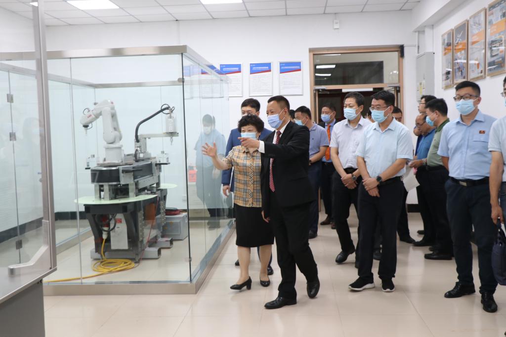仪式结束后,与会嘉宾一同参观实验室。山大淄博校友会副会长、新华医疗制药科技集团总经理殷文平、学校相关职能部门负责人、电气与控制学院部分班子成员、师生代表一同参加此次活动。