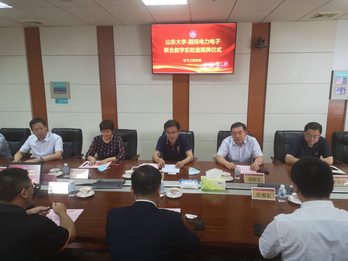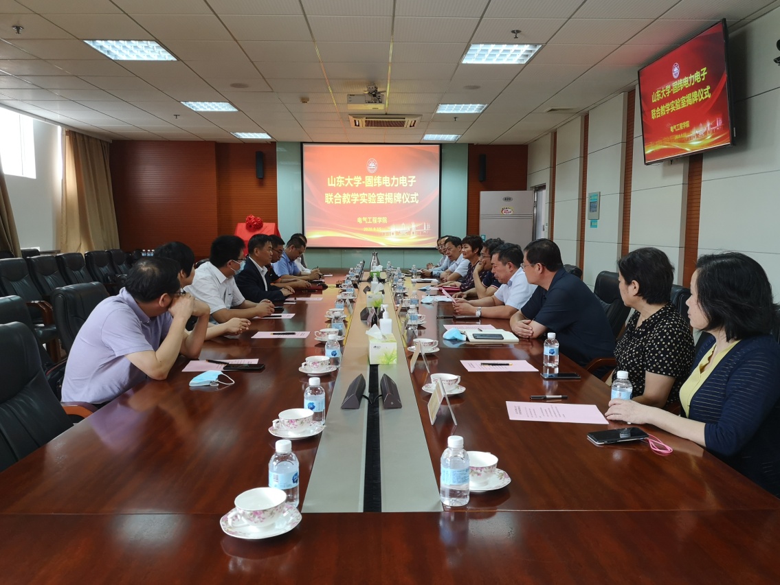 9月15日,山东大学与固纬电子(苏州)有限公司举行校企合作“电力电子联合教学实验室”揭牌仪式,由yl23411永利集团官网登录副院长杨明主持,资产与实验室管理部部长王浩、资产与实验室管理部副部长刘健、yl23411永利集团官网登录党委书记刘相宜、yl23411永利集团官网登录常务副院长张恒旭、固纬电子大中华区副总经理郭国栋出席会议。