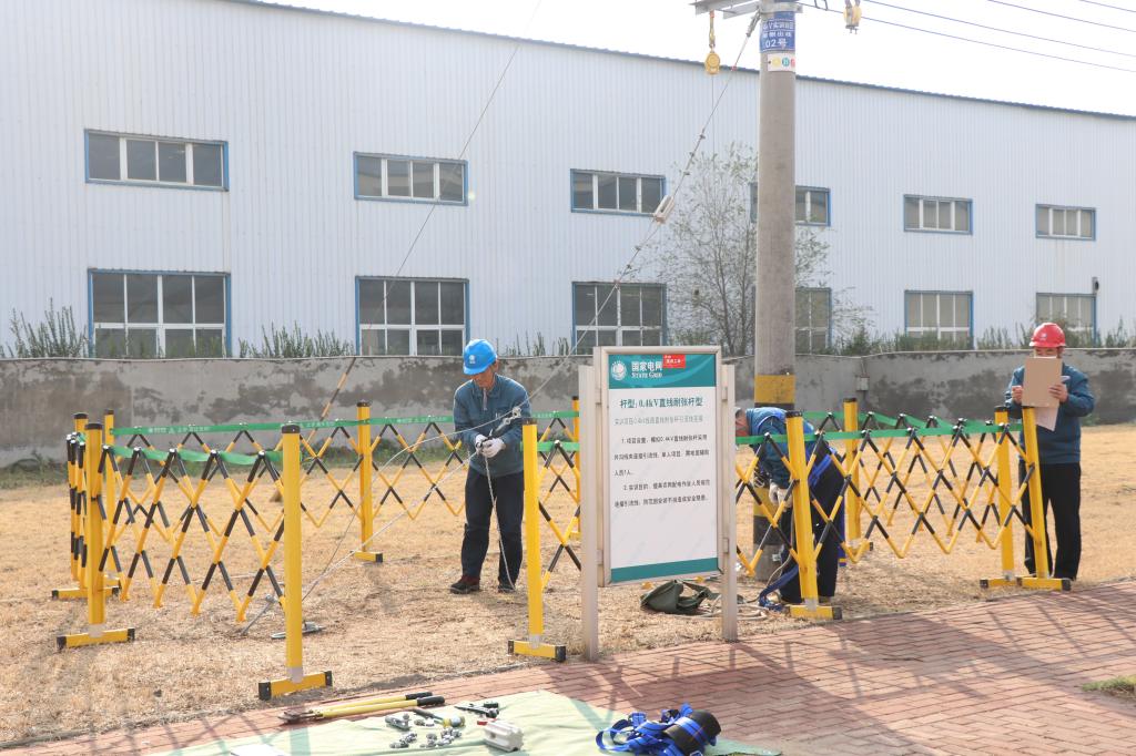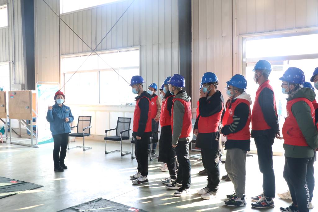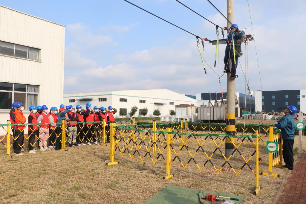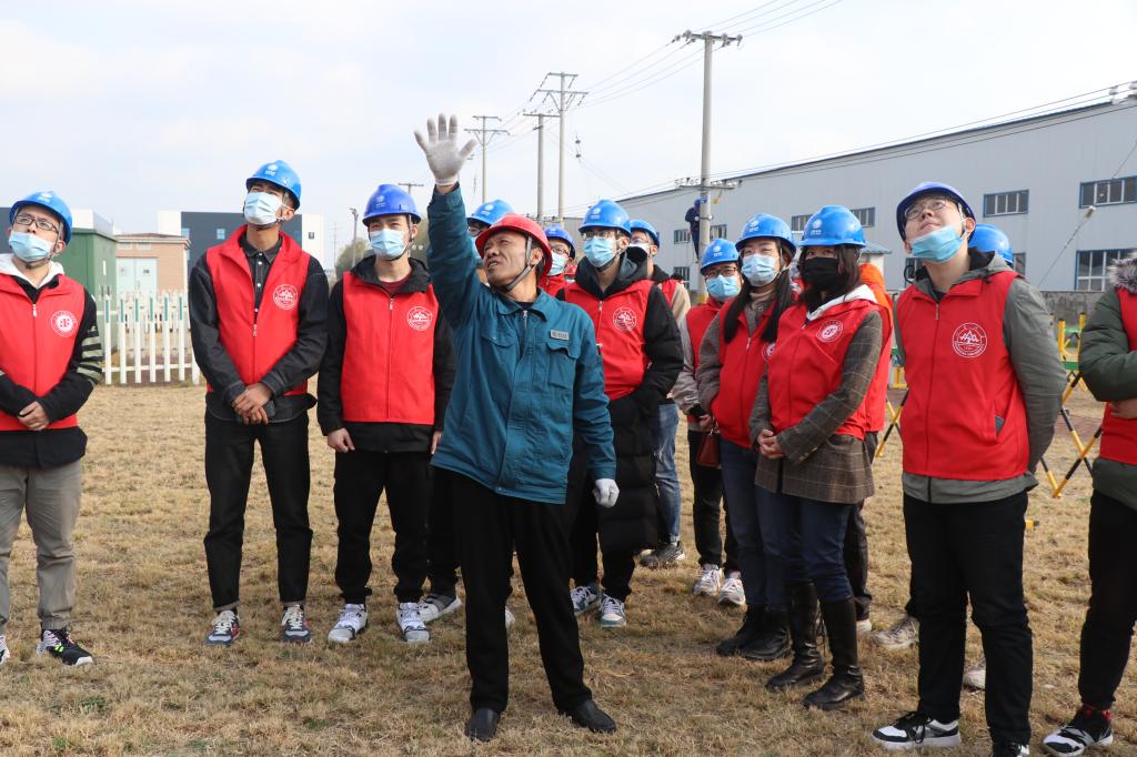 下午2:00,同学们到达国网齐河县供电公司,入营同学们陆续下车、测量体温、戴好安全帽,井然有序。随后,同学们在实习师傅的带领下在培训基地处集合,分成三批参观比武,学习实践操作,更深入了解电网工作。