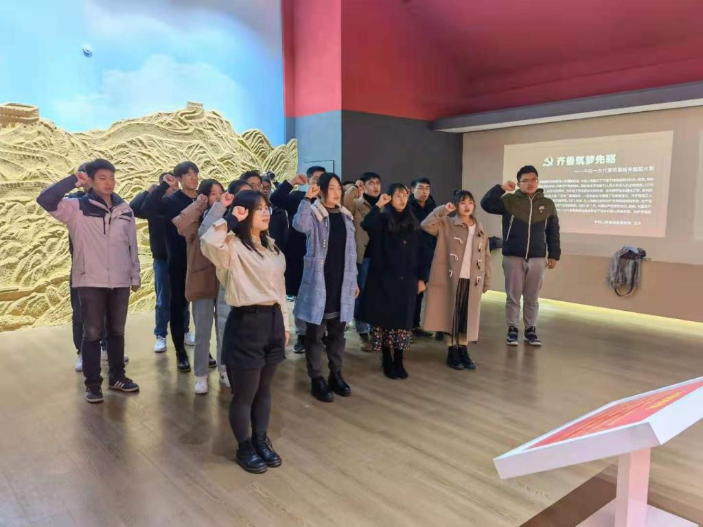 为深入贯彻落实习近平新时代中国特色社会主义思想和党的十九大精神,提升党员党性修养,推动党员教育工作立体化,着力建设一支信念坚定、素质过硬的研究生党员队伍,12月5日,yl23411永利集团官网登录研究生党建工作中心举办了“重拾红色记忆,传承红色基因”山东省党史陈列馆参观活动暨入党宣誓仪式,本期发展的预备党员、部分发展对象以及党建工作中心全体人员参与了此次活动。
