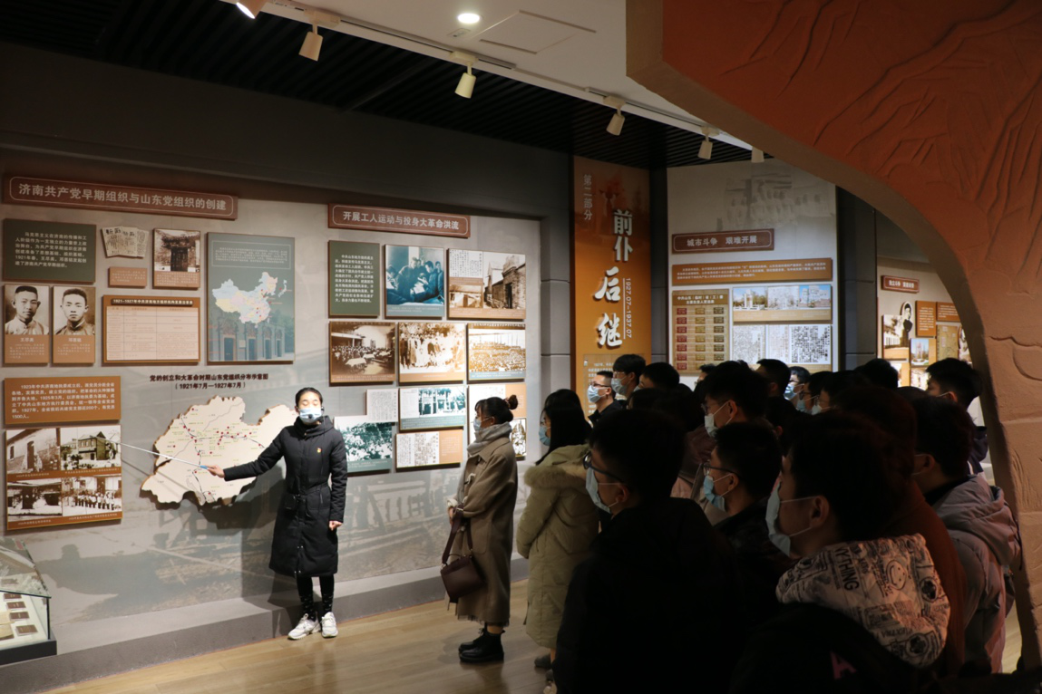 下午3时40分,16名预备党员、部分发展对象及5名党建工作中心成员准时到达山东省党史陈列馆。山东省党史陈列馆是山东省和济南市爱国主义教育基地、党员教育基地、反腐倡廉教育基地,济南市青少年教育基地。在工作人员的带领下,全体成员首先来到陈列馆第一、二展厅,参观并学习了“山东革命历史展”和“泉城谱新篇--济南社会主义建设和改革开放历史展”,感受到了老一辈共产党人勇立潮头、积极探索的精神;随后来到数字化展厅,观看了“山东抗日战争历史图片展”、“铭记历史,烛照未来--济南抗日战争历史图片展”、“伟大的胜利--济南战役历史图片展”、“光辉的历程--中国共产党历次全国代表大会图片展”等数字展览,同学们仿佛置身其中,被共产党艰难的发展历程和来之不易的革命胜利深深打动。