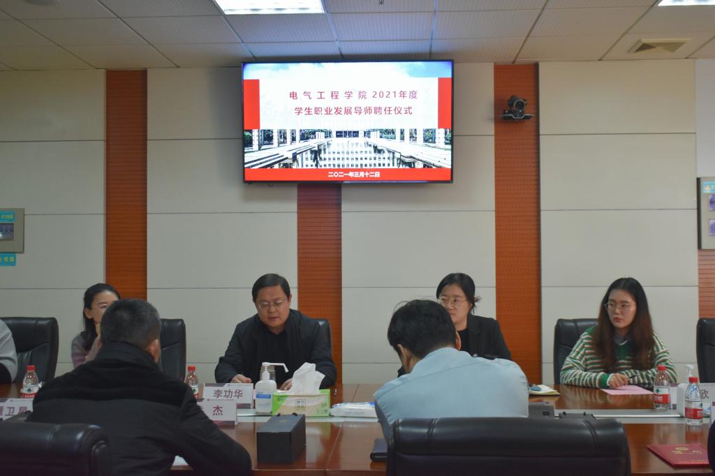 3月12日下午,电气工程学院学生职业发展导师聘任仪式在兴隆山校区举行。学院党委副书记李功华为四名聘任导师颁发聘书并致辞,团委书记邱瑶主持仪式。
