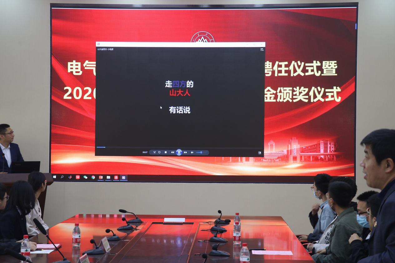随后,获奖学生代表,2019级硕士研究生李冠斌发言,他首先代表全体2020年度四方继保奖学金获得者对学校学院领导老师以及北京四方继保自动化股份有限公司表示诚挚的感谢。他表示自己在山大的求学时光是幸运的,老师与同学的帮助、优良的学习氛围不断激励山大学子勇于探索、不断创新,同时提前修的经历让他养成了更加高效的学习习惯和更为严谨的科研态度,班长的工作锻炼了他的能力,让他收获了快乐。作为本年度四方继保奖学金的获得者,他感谢四方继保提供了这次机会,正是因为有了四方继保这样负责任、心系教育的企业,国家的电力工业才会取得长足发展、蒸蒸日上,每一位电气学子才能更加坚定学业有成后奉献社会的理想信念,今后,每一位山大学子将不畏艰难、不惧挫折,为祖国和社会的发展贡献自己的一份力量。