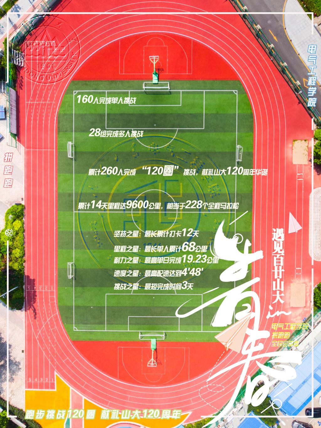 不抛弃,不放弃,坚持跑下去,生活才会有意义。在为期14天的打卡活动中,大风天气阻挡不了电气学子们前进的步伐,料峭的春寒也抵挡不住同学们奔跑的热情。矫健的身姿是青春最好的写照,挥洒的汗水是对百廿山大最美好的祝愿。