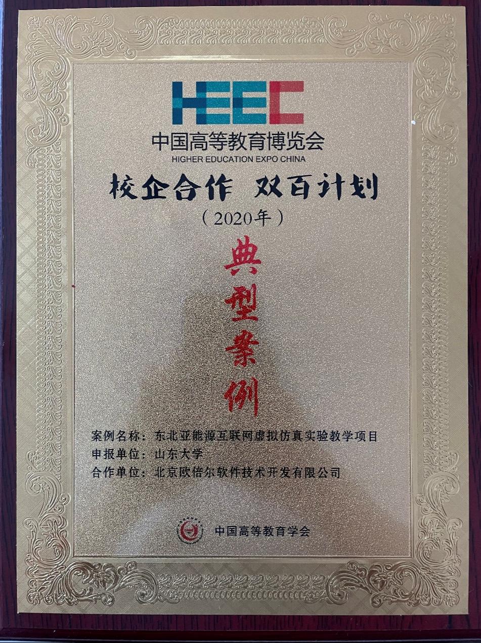 中国高等教育学会于去年8月启动2020年度中国高等教育博览会“校企合作双百计划”典型案例推选工作。全国本科、专科院校和企业共计285家单位报送了670项案例参评。经资格审核、通讯推选、会议推选,我院申报的《东北亚能源互联网虚拟仿真实验教学项目》和《山东大学-固纬电力电子联合教学实验室建设项目》校企合作案例均成功进入第55届中国高等教育博览会校企合作典型案例路演展示及答辩环节。经现场答辩和专家组推选,《东北亚能源互联网虚拟仿真实验教学项目》获典型案例提名。2021年3月26日,由高教会专家、高校和企业代表组成的专家组来到我院进行了现场走访考查。经过专家组评选,该案例最终被评定为2020年度中国高等教育博览会“校企合作 双百计划”典型案例,这也是我校获评的第一项“校企合作 双百计划”典型案例。