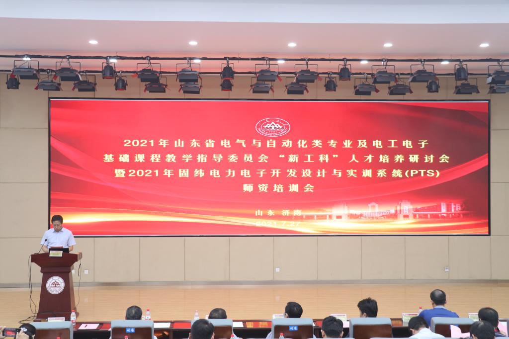 2021年7月27日,2021年山东省电气与自动化类专业及电工电子基础课程教学指导委员会“新工科”人才培养研讨会在山东大学兴隆山校区成功召开,同时,本次会议也是2021年固纬电力电子开发设计与实训系统(PTS)师资培训会的开幕式。