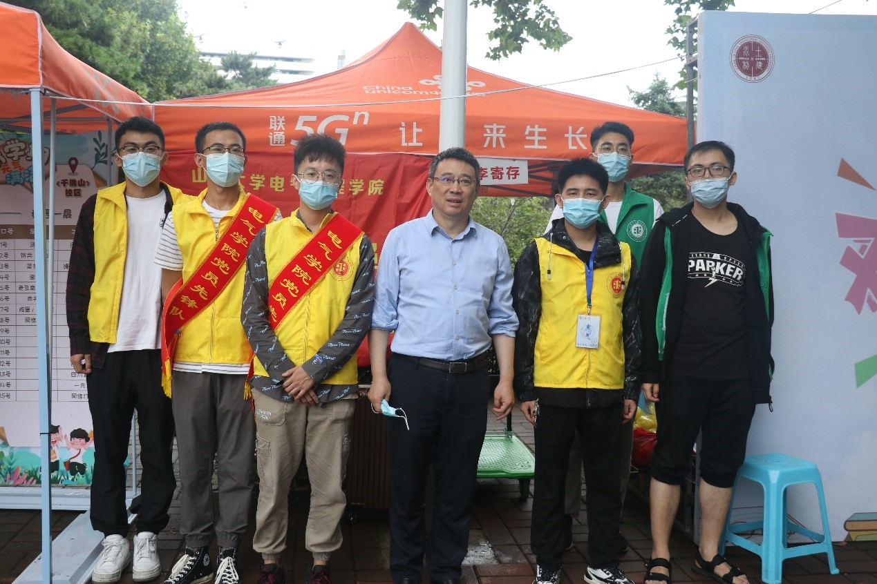 迎新期间,中国工程院院士、山东大学副校长李术才,山东大学副校长吴臻莅临迎新现场指导视察,对学院新生进行了亲切慰问并赠予了新生开学礼物,与现场工作人员进行了亲切交谈,对我院迎新工作给予高度评价。视察期间,李术才对本科就读于山东大学的研究生新生“因为热爱山大,再次选择山大”的情怀表达了高度赞赏,勉励新同学专心学术,未来在科研的道路上砥砺前行。吴臻更是对学院特设党员先锋岗这一行为表示赞扬,肯定了党员在迎新工作中的先锋模范作用。学院领导班子成员分别在不同时段到迎新现场视察指导,给大家加油鼓劲。在全体人员的共同努力下,整个2021级研究生迎新工作忙而不乱,井井有条,于9月7日晚7点在完成最后一个学生报到后,2021级研究生迎新工作圆满结束。