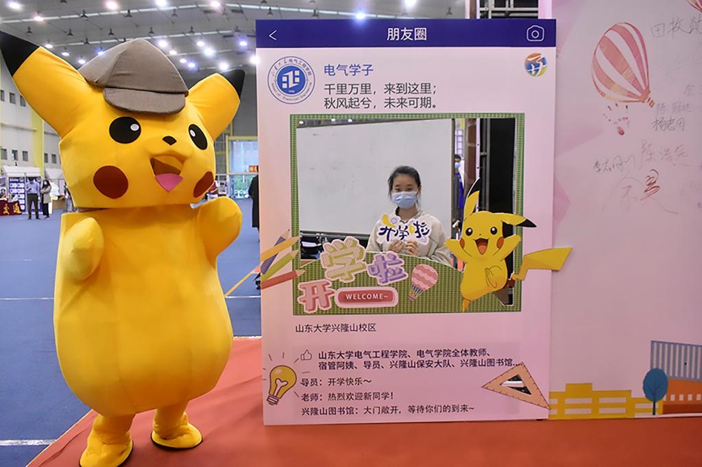 迎新现场,学院为新生准备了多样的欢迎活动。LED显示屏上播放着学校、学院宣传片以及新生代表和学导录制的迎新视频,智能车、智能垃圾分类桶等科创作品为新生带来专业眼界的拓展,定制的皮卡丘钥匙扣、笔记本和礼品袋让新生充分感受到学院的温馨与活力。
