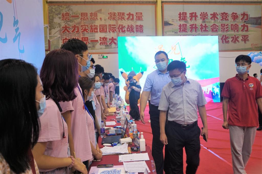 9月6日,樊丽明、吴臻、王君松来到迎新现场,与报到新生亲切交谈,勉励经济困难学生,鼓励同学们积极昂扬地迎接大学生活,对学院的迎新工作提出相关意见和建议,并与师生一同合影留念。9月7日,桑晓旻莅临参观了yl23411永利集团官网登录迎新工作各环节流程与特色项目,对学院工作人员和志愿者的辛勤付出给予赞扬。学院党委书记刘相宜在迎新现场与学生亲切交流,及时解决学生困难。疫情防控常态化大背景下,学院学工队伍协同合作,有序调控,不断完善工作内容,积极改进工作方法,党委副书记李功华、各年级辅导员在迎新现场统筹调控,确保各项迎新工作的顺利进行。