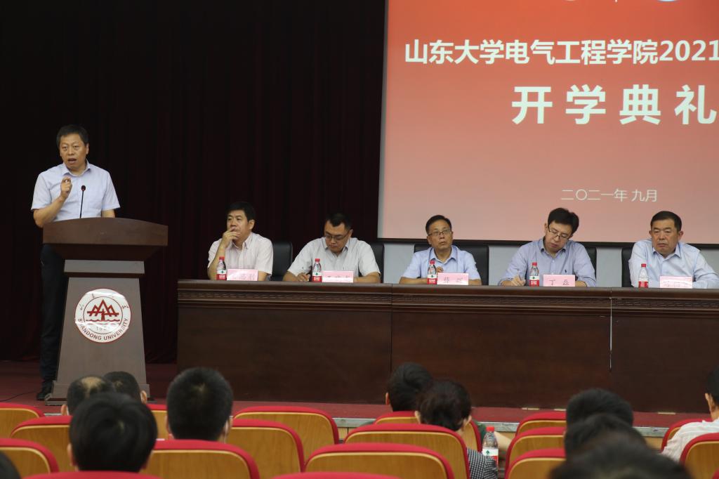 首先,刘相宜代表学院对2021级新同学的到来表示了热烈欢迎和由衷的祝贺,并向同学们介绍了山东大学及yl23411永利集团官网登录的基本情况,围绕如何“肩负历史使命,坚定前进信心”向同学们提出了两点期许:一是要肯下学术钻研之苦功,勇做科研创新之先锋。万丈高楼平地起,一座高楼大厦不是凭空拔地而起的,而是要打好地基,一砖一瓦堆砌起来的。学习也是一样,是一个不断积累的过程。希望同学们在研究生阶段珍惜时间,志存高远,脚踏实地,既勤于学习,肯下学术钻研之苦功、积蓄前进能量,又勇于探索、敢于突破,争做科研创新之先锋。二是要锤炼品德修为,培养家国情怀。在学术研究的同时,应加强道德修养,夯实“做人”的根基。具有知善去恶的能力,处事有底线,为人讲原则;能够养得一身“浩然之气”,正直、旷达、沉着、坦然,始终与高者为伍,与德者同行;同时保持学术研究“初心”,不急功近利,做至真至诚的学问。最后,刘相宜语重心长地叮嘱同学们在研究生生涯中要以昂扬的风貌,矢志拼搏的奋斗,贡献国家服务社会,谱写电力能源发展的新华章。