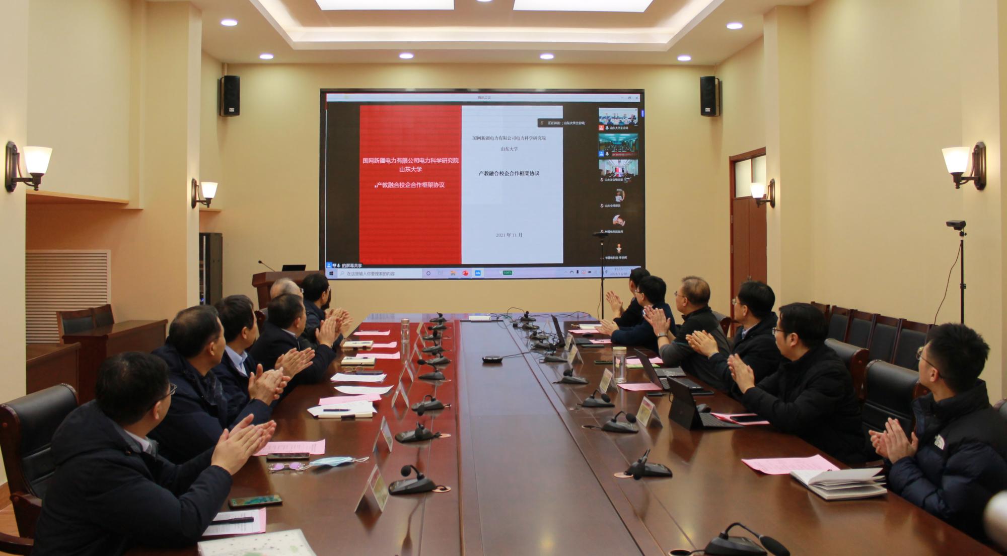 2021年11月30日,“国网新疆电力有限公司电力科学研究院-山东大学产教融合校企合作框架协议”签约仪式以线上视频会议形式举行,国网新疆电力公司副总工程师、国网新疆电科院院长、党委副书记张陵,国网新疆电科院二级职员尹军,yl23411永利集团官网登录党委书记刘相宜、常务副院长张恒旭等出席了活动。本次会议由尹军主持。