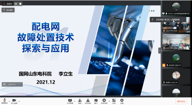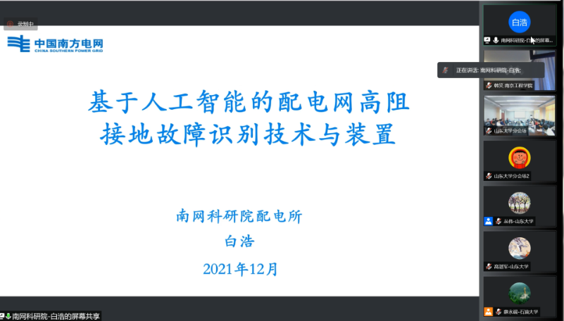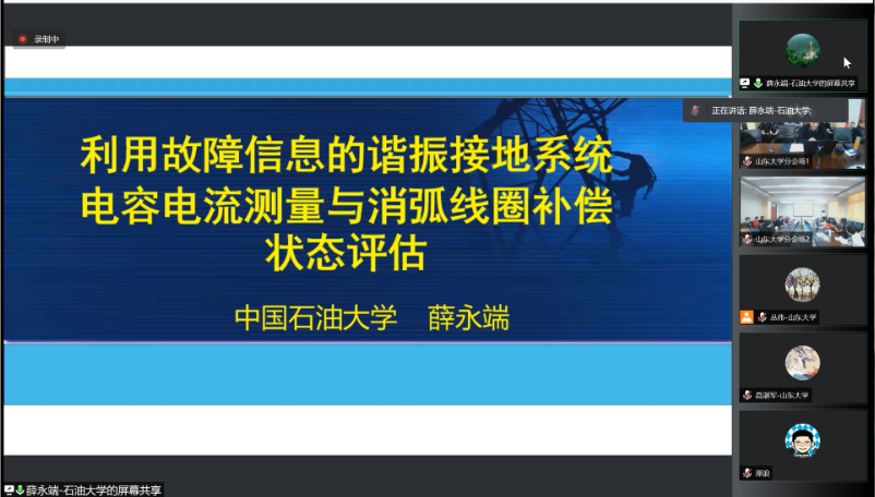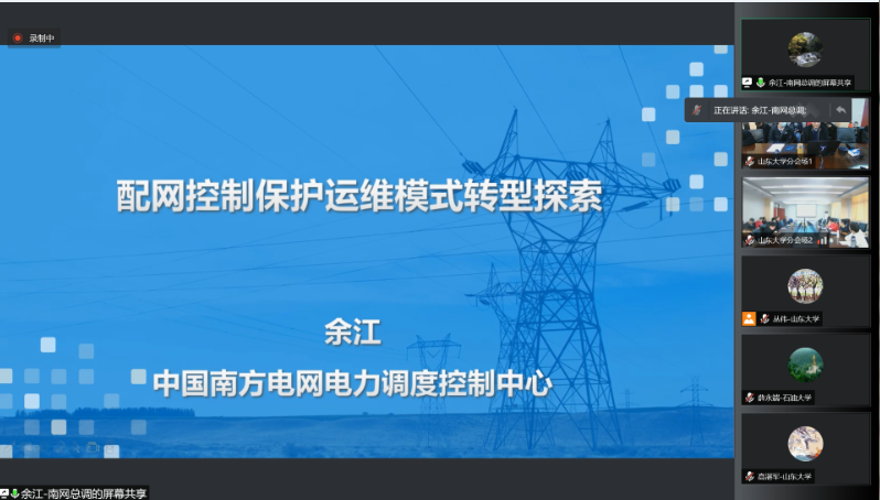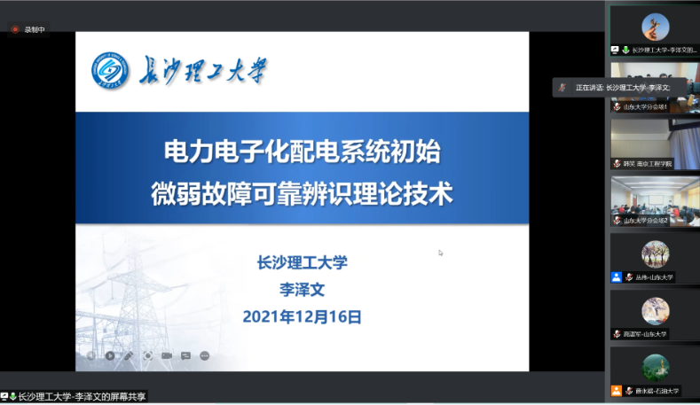 12月16日上午分委会组织了专场技术报告,邀请了南方电网总调保护处副处长余江、中国石油大学教授薛永端、国网山东电科院配网中心主任李立生、ABB中国有限公司电气事业部系统产品市场战略经理曹捷、长沙理工大学教授李泽文、南方电网科学研究院配电技术研究所白浩、国网湖南电科院继电保护中心龙雪梅、山东大学副教授丛伟8位专家做了精彩学术报告,围绕配电网保护控制领域的最新技术成果、关键技术问题、未来发展趋势进行了学术交流。本次会议采取线上形式召开,在山东大学设立了分会场,共有130余人参会,我院继电保护研究所的部分老师和研究生在分会场集中参会,会议取得了热烈的反响。