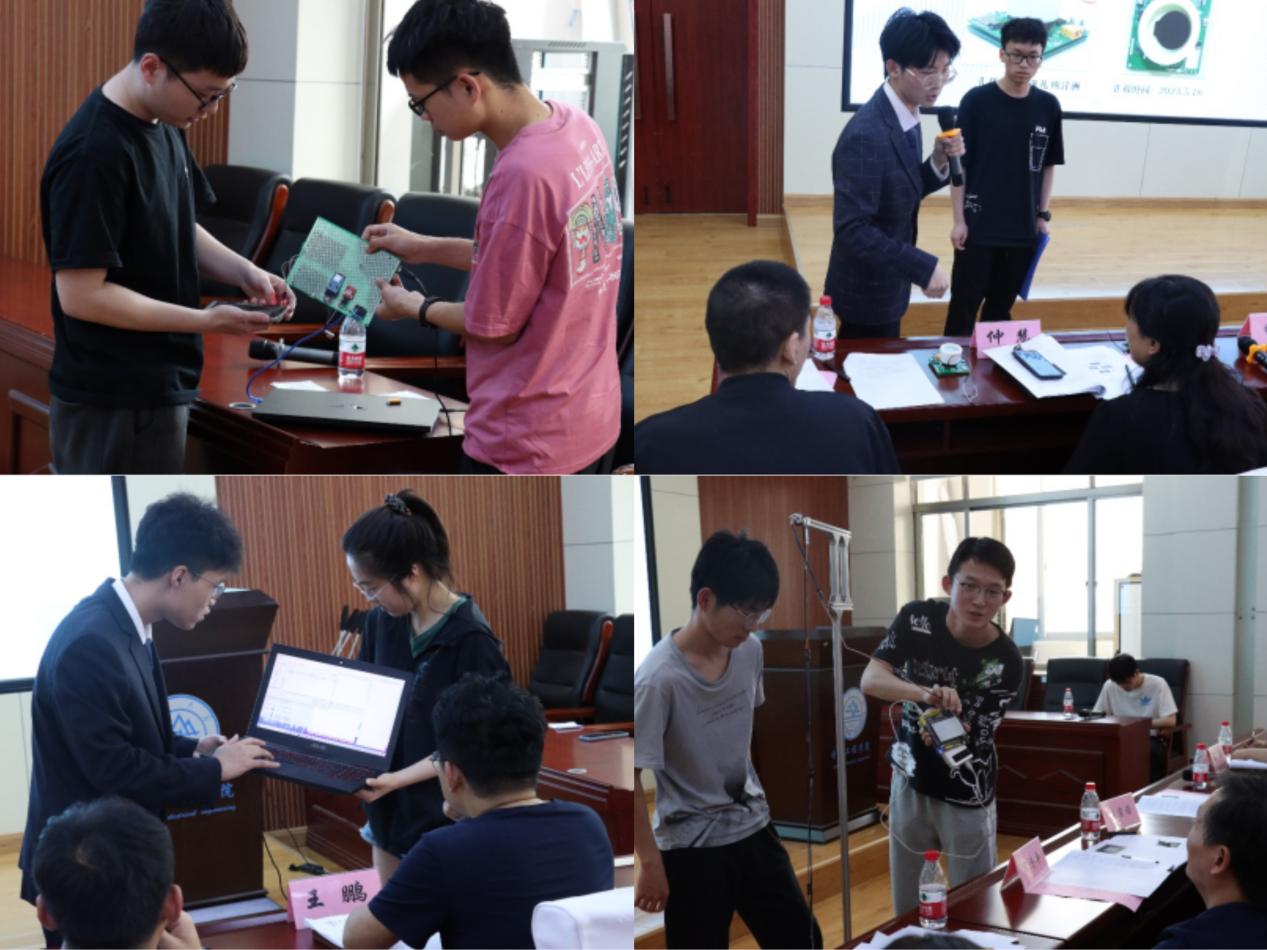 本届“电力杯”大赛采取了自由命题与指定命题相结合的参赛形式。其中,指定命题由山大电力技术有限公司的专家精心设计,在往届的基础上增设了软件相关命题,旨在增强学生的综合实践能力。指定命题类作品包括异常声音信号在线监测与智能识别系统、波形拟合、对齐以及录波文件合并,以及数学物理模型与实际量测相结合的摆球运动监测装置等。自由命题类别的作品则涉猎广泛,有的专注于软件开发,例如设计用于预测电力系统负荷的多模型长短期软件,风电机组精细化实时仿真器及其上位机软件等。还有一些基于课题的科研项目,例如小功率三相异步电机永磁化改造及其性能分析,研究具备软开关高增益的准Z源DC-DC变换器。同时也不乏实物制作的作品,比如多模式多功能超级旋钮设计,基于Arduino和MPU6050的老年人跌倒检测和心率血氧检测装置。更有一些作品展现出了学科间的交叉融合,如气泡引导水下放电的冲击波碎岩装置。比赛过程中,选手们依次上台进行八分钟的作品陈述和展示,评审老师根据选手们的陈述和现场表现提出针对性的问题和建议,并给出最终得分。