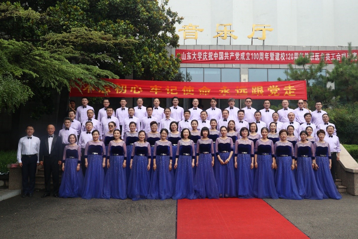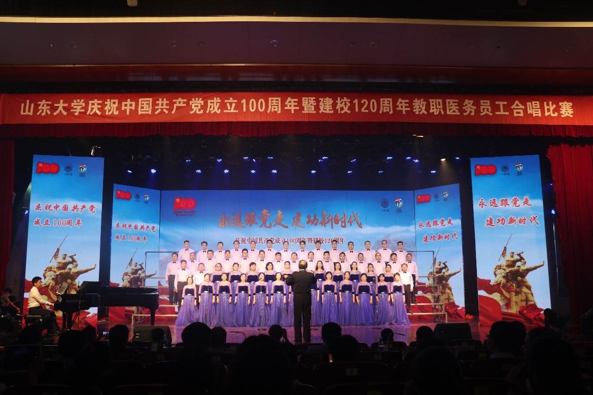 薪火相传百年路,以歌叙史颂党恩。为庆祝中国共产党成立100周年暨山东大学建校120周年,由校工会、妇委会举办的以“永远跟党走 建功新时代”为主题的教职医务员工合唱比赛于6月28-29日在中心校区音乐厅举行,决赛在威海、青岛校区设视频分会场。学院党委精心组织56名教师组成教职工合唱团,以一首《红色印记》重温革命历程,凝聚奋进力量。学院合唱团曲目编排新颖,歌声荡气回肠,在预赛61支队伍中脱颖而出获得第八名闯入决赛,在决赛中,学院合唱团戮力同心,表现优异,荣获三等奖。
