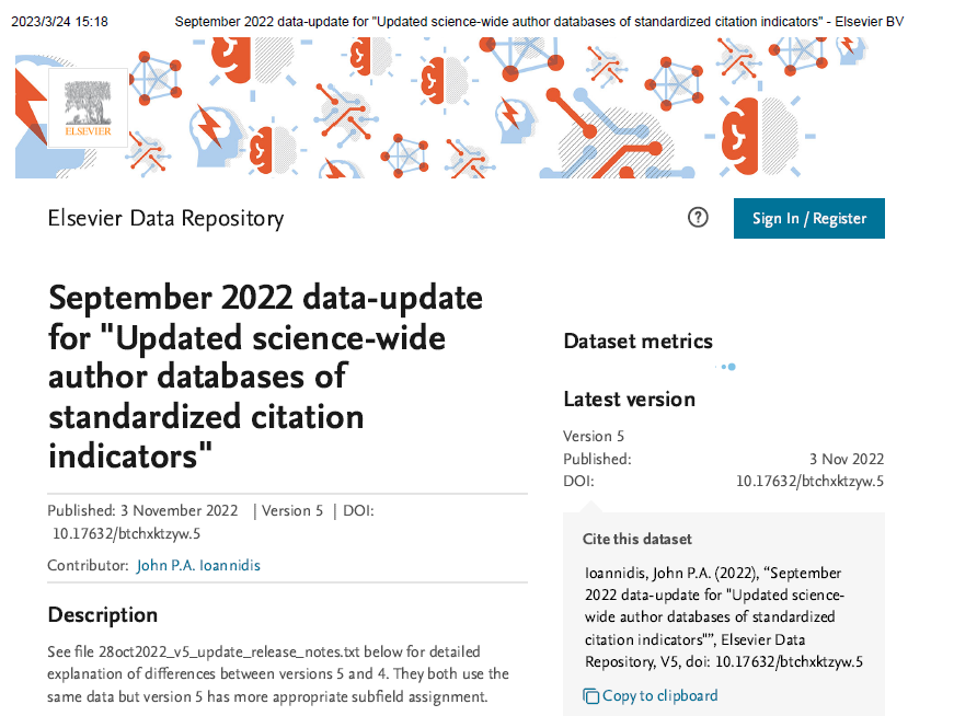 该榜单由斯坦福大学John P. A. Ioannidis教授团队与Elsevier旗下Mendeley Data发布。榜单以Scopus数据库为依据,基于引用次数、H因子、HM因子等综合指标,从千万名科学家中遴选出世界排名前2%的科学家,分为22个领域和176个细分子领域。