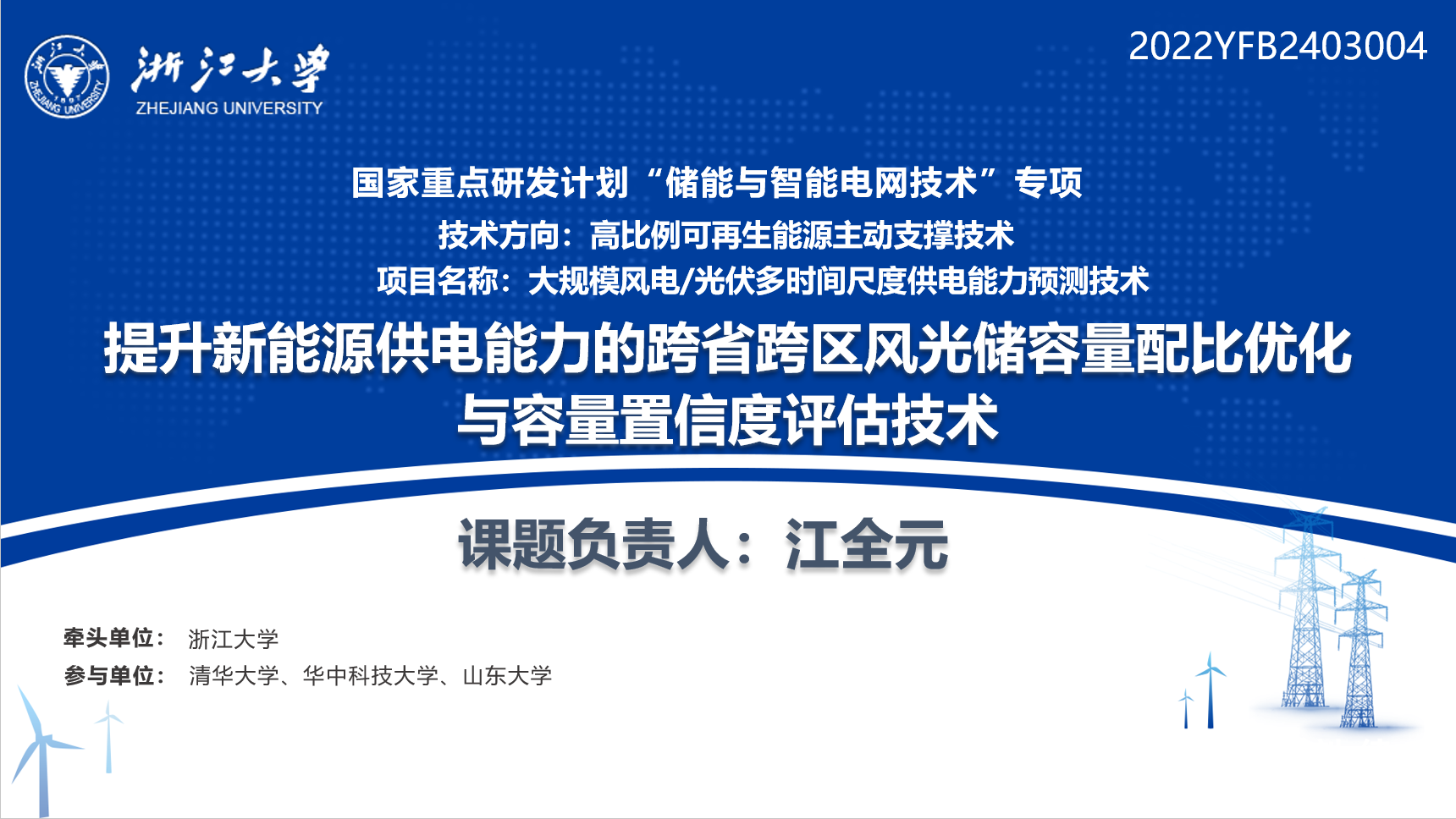 3月24日下午,国家重点研发计划“大规模风电光伏多时间尺度供电能力预测技术”课题4“提升新能源供电能力的跨省跨区风光储容量配比优化与容量置信度评估技术”启动会在杭州召开,团队王孟夏副教授作为课题4子课题1负责人参加了本次会议。