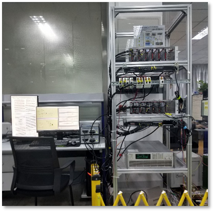 实验室前期已经完成串并联变流器AC-DC混联微网功率单元设计与调试,并组建了完善测试平台(如图2所示)。实验室配有基于FPGA为核心控制单元的RT-Box交-直流混联微网硬件在环仿真系统及实时控制器(如图3所示)。实验室还配有Chroma回馈式可编程交-直流电源及非线性负载(如图4所示),可以模拟具有各次谐波平衡及不平衡电网,同时可模拟非线性负载。实验室建有微网源-荷交互模拟平台(如图5.5所示),可验证不同负载情况下多端口变流器的控制效果。